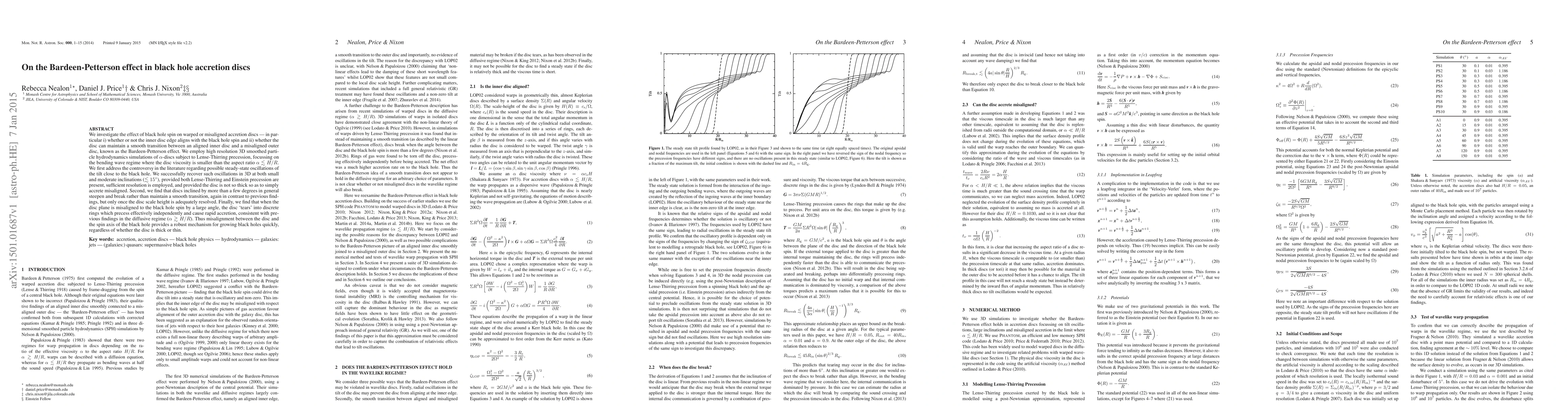 This study investigates the Bardeen-Petterson effect in black hole accretion discs, finding oscillations in the inner disc edge's tilt near the black hole with high-resolution 3D simulations. It concludes that misaligned discs tend to break rather than smoothly transition, and large misalignments cause the disc to fragment into independent rings, facilitating rapid accretion.