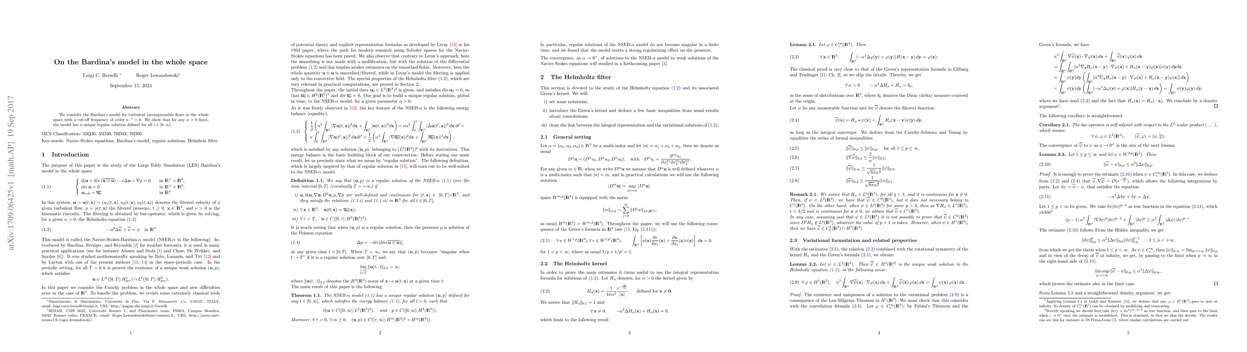 We consider the Bardina's model for turbulent incompressible flows in the whole space with a cut-off frequency of order 1/alpha. We show that for any alpha >0 fixed, the model has a unique regular solution defined for all time.