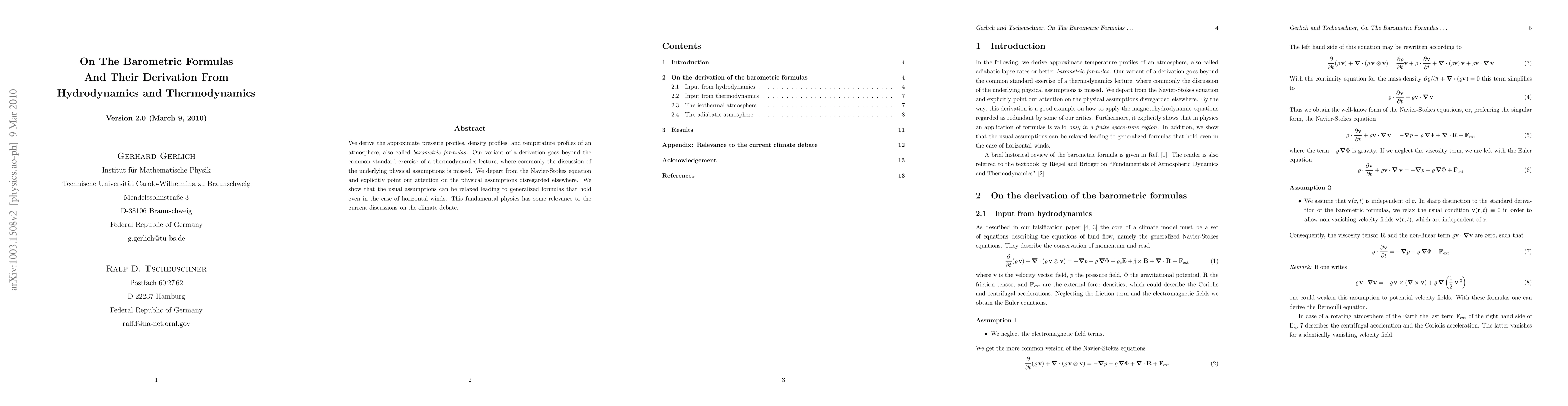 Researchers derive new barometric formulas that relax common assumptions in thermodynamics and hydrodynamics, producing generalized models for atmospheric pressure profiles and temperature gradients that apply to horizontal winds.