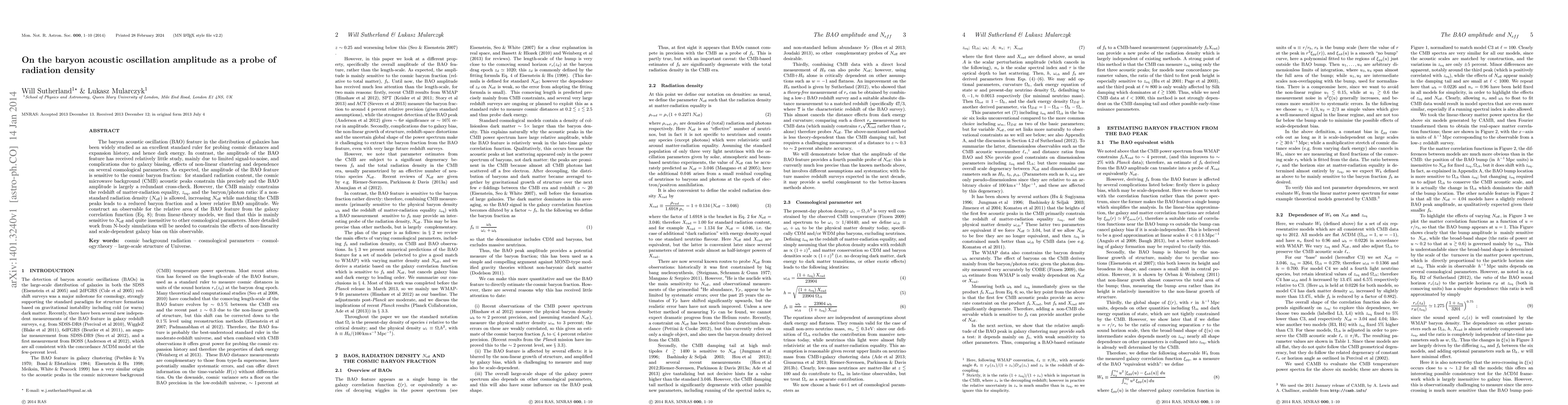 The baryon acoustic oscillation (BAO) feature in the distribution of galaxies has been widely studied as an excellent standard ruler for probing cosmic distances and expansion history, and hence dark energy. In contrast, the amplitude of the BAO feature has received relatively little study, mainly due to limited signal-to-noise, and complications due to galaxy biasing, effects of non-linear clustering and dependence on several cosmological parameters. As expected, the amplitude of the BAO feature is sensitive to the cosmic baryon fraction: for standard radiation content, the cosmic microwave background (CMB) acoustic peaks constrain this precisely and the BAO amplitude is largely a redundant cross-check. However, the CMB mainly constrains the redshift of matter-radiation equality, z_eq, and the baryon/photon ratio: if a non-standard radiation density N_eff is allowed, increasing N_eff while matching the CMB peaks leads to a reduced baryon fraction and a lower relative BAO amplitude. We construct an observable for the relative area of the BAO feature from the galaxy correlation function (Eq.~8); from linear-theory models, we find that this is mainly sensitive to N_eff and quite insensitive to other cosmological parameters. More detailed work from N-body simulations will be needed to constrain the effects of non-linearity and scale-dependent galaxy bias on this observable.