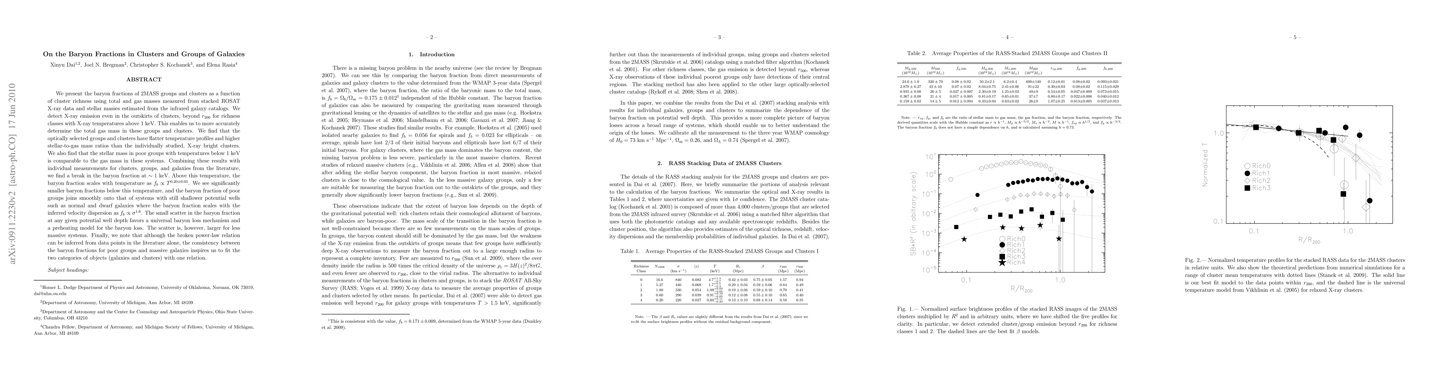 This paper investigates baryon fractions in galaxy clusters and groups, finding a break in the baryon fraction at ~1 keV. Above this temperature, the baryon fraction scales with temperature, while below it, the baryon fraction correlates with velocity dispersion, suggesting a universal baryon loss mechanism.