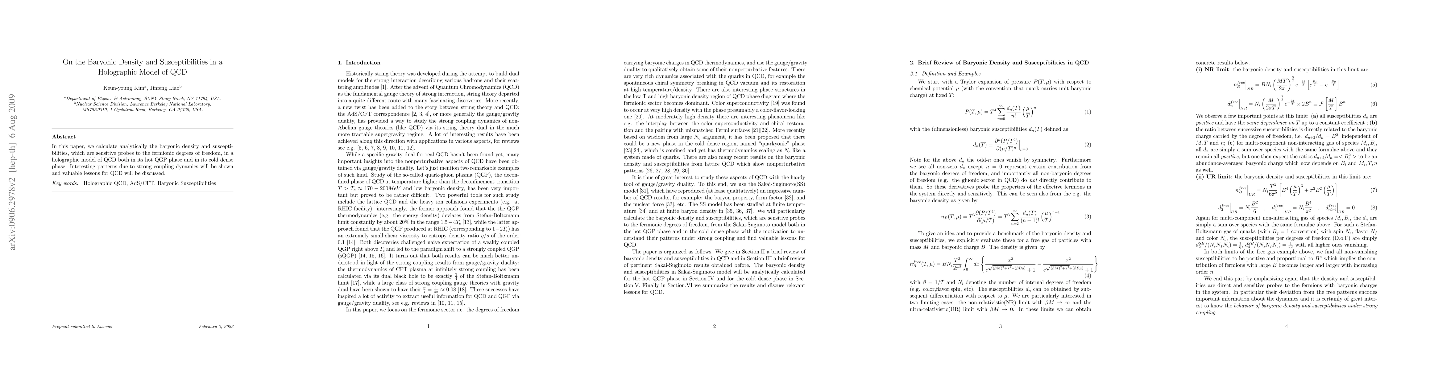 This paper analytically computes baryonic density and susceptibilities in a holographic QCD model, revealing patterns in both hot quark-gluon plasma and cold dense phases, highlighting strong coupling dynamics and offering insights into QCD.