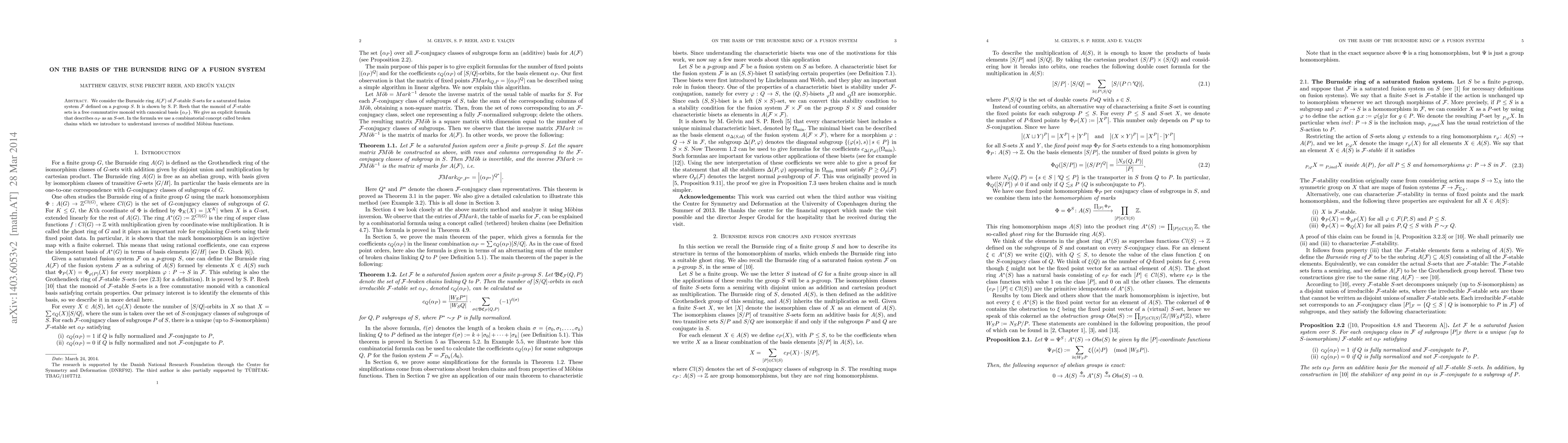 We consider the Burnside ring $A(\mathcal{F})$ of $\mathcal{F}$-stable $S$-sets for a saturated fusion system $\mathcal{F}$ defined on a $p$-group $S$. It is shown by S. P. Reeh that the monoid of $\mathcal{F}$-stable sets is a free commutative monoid with canonical basis $\{\alpha_P\}$. We give an explicit formula that describes $\alpha_P$ as an $S$-set. In the formula we use a combinatorial concept called broken chains which we introduce to understand inverses of modified M\"obius functions.
