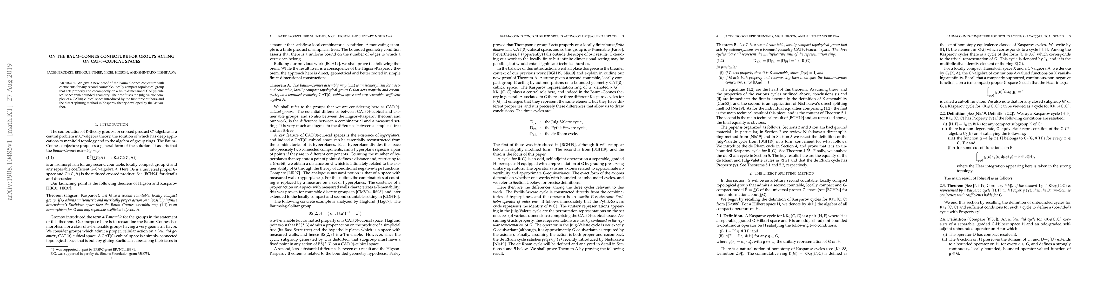 We give a new proof of the Baum--Connes conjecture with coefficients for any second countable, locally compact topological group that acts properly and cocompactly on a finite-dimensional CAT(0)-cubical space with bounded geometry. The proof uses the Julg-Valette complex of a CAT(0)-cubical space introduced by the first three authors, and the direct splitting method in Kasparov theory developed by the last author.