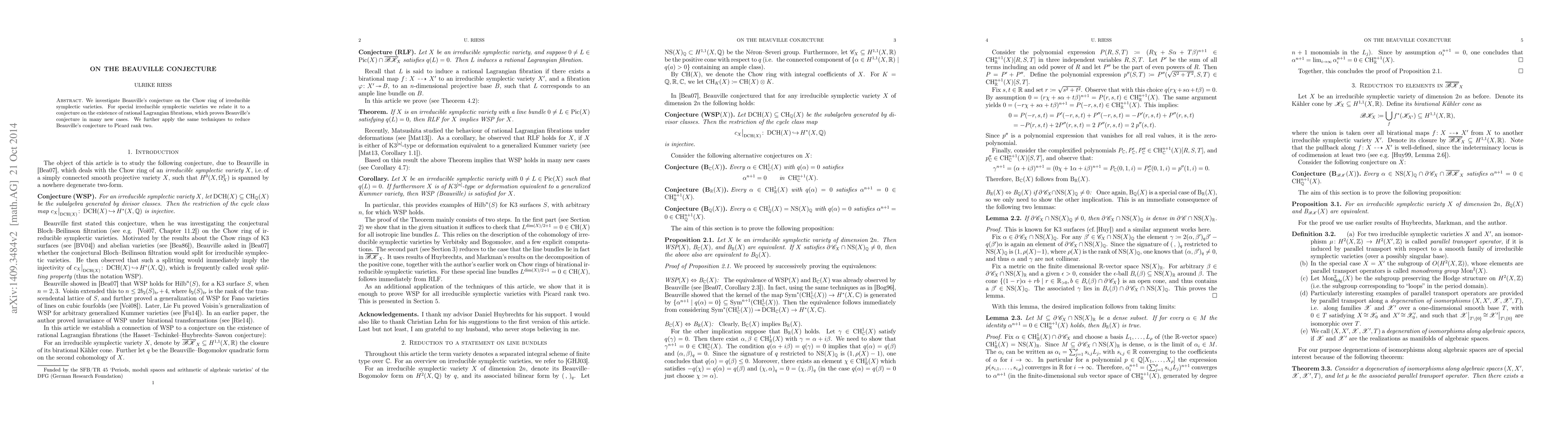 The paper introduces and leverages the concept of degenerations of isomorphisms along algebraic spaces to prove key propositions and reduce Beauville's conjecture.