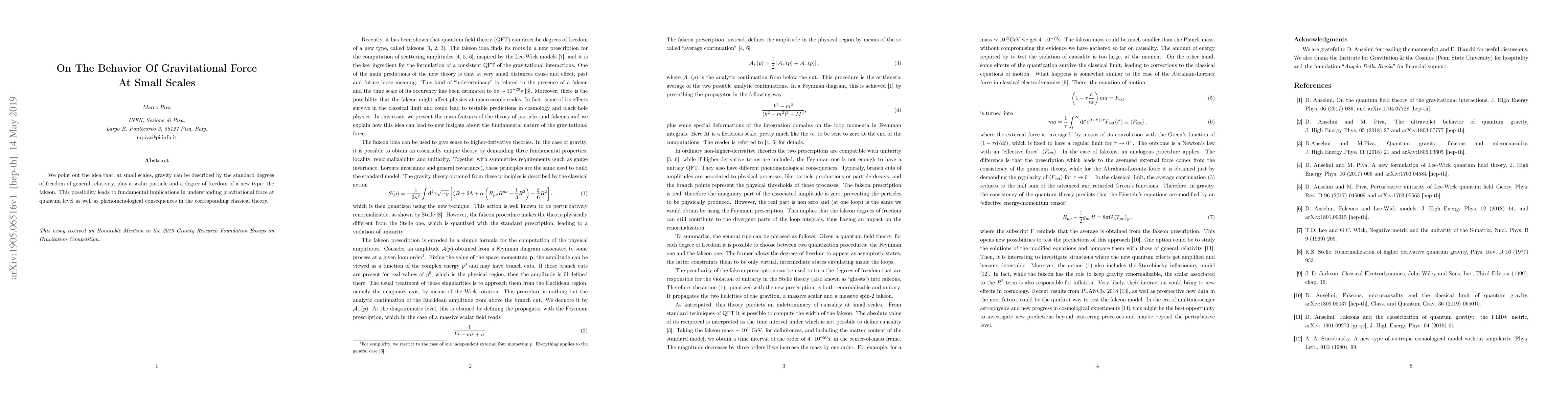 We point out the idea that, at small scales, gravity can be described by the standard degrees of freedom of general relativity, plus a scalar particle and a degree of freedom of a new type: the fakeon. This possibility leads to fundamental implications in understanding gravitational force at quantum level as well as phenomenological consequences in the corresponding classical theory.