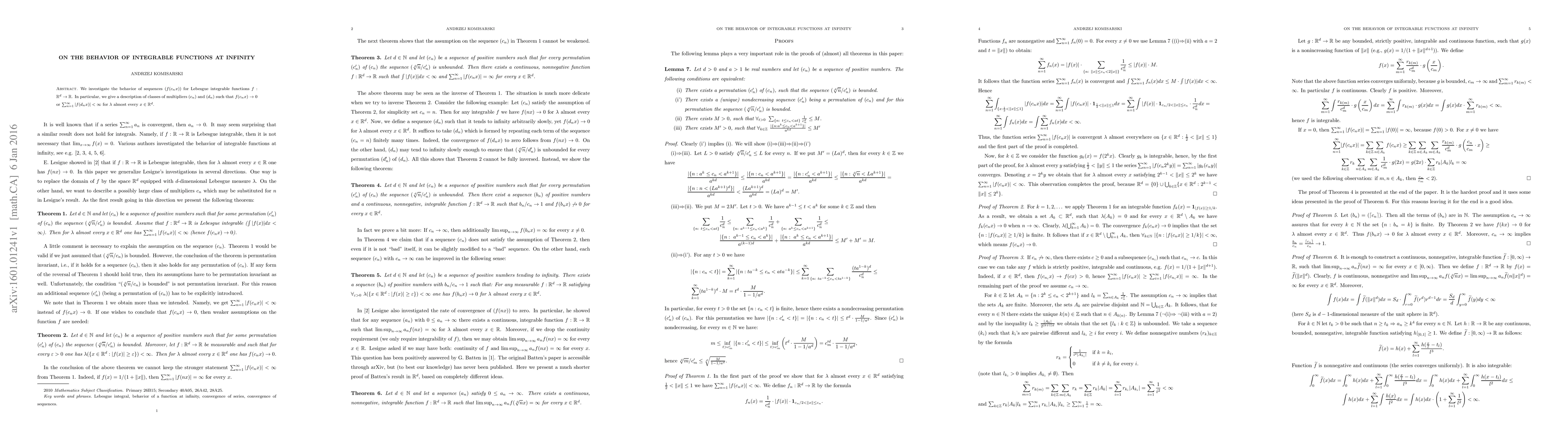 We investigate the behavior of sequences $(f(c_nx))$ for Lebesgue integrable functions $f:\mathbb R^d\to\mathbb R$. In particular, we give a~description of classes of multipliers $(c_n)$ and $(d_n)$ such that $f(c_nx)\to0$ or $\sum_{n=1}^\infty|f(d_nx)|<\infty$ for $\lambda$ almost every $x\in\mathbb R^d$.