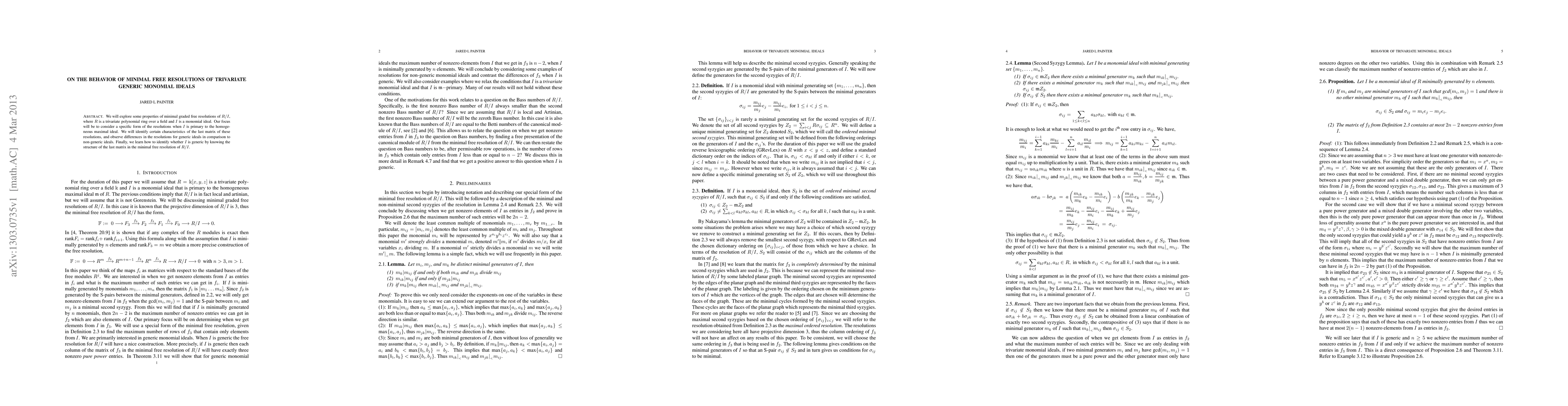 This paper investigates the properties of minimal free resolutions for trivariate monomial ideals in polynomial rings, particularly focusing on the structure of the last matrix in these resolutions. It distinguishes between generic and non-generic ideals based on the characteristics of their minimal free resolutions.