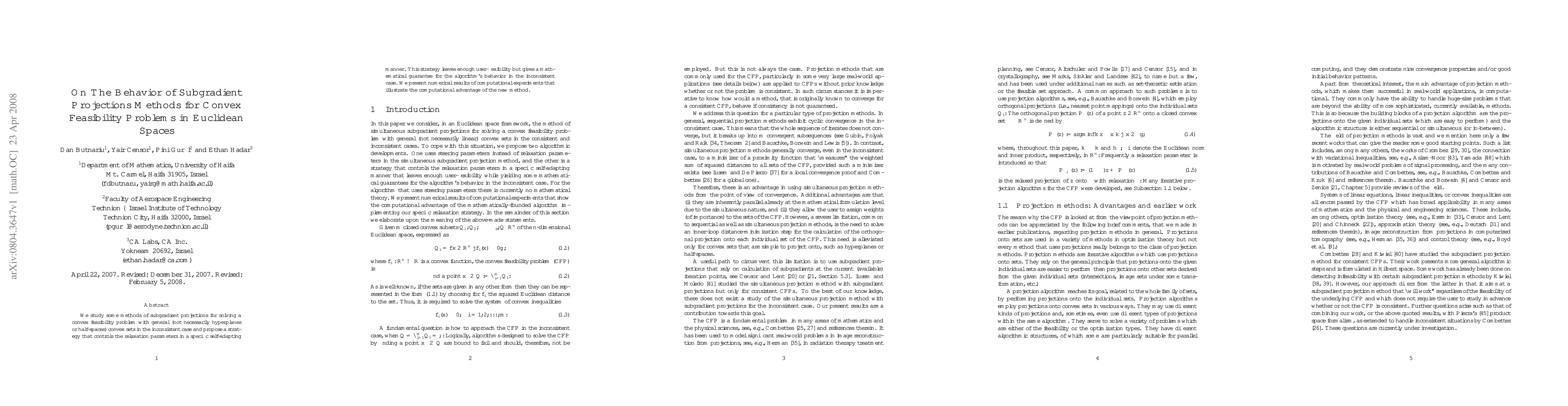 This paper investigates subgradient projection methods for solving convex feasibility problems in Euclidean spaces, proposing a self-adapting strategy to manage relaxation parameters. The new method offers computational advantages, as demonstrated by numerical experiments.