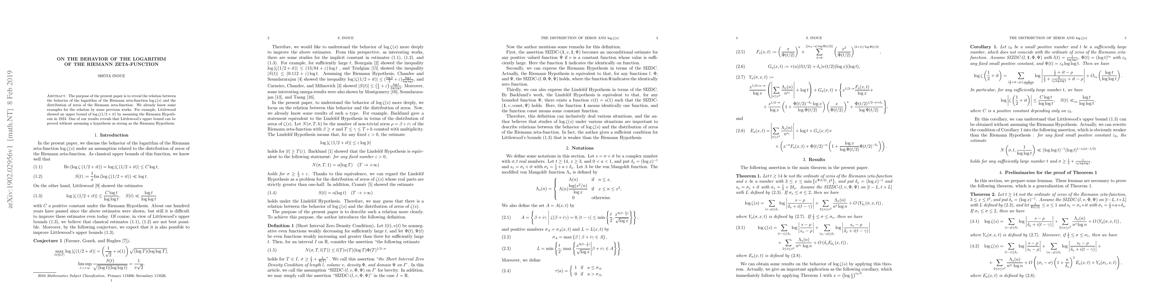 The purpose of the present paper is to reveal the relation between the behavior of the logarithm of the Riemann zeta-function $\log{\zeta(s)}$ and the distribution of zeros of the Riemann zeta-function. We already know some examples for the relation by some previous works. For example, Littlewood showed an upper bound of $\log{\zeta(1/2 + it)}$ by assuming the Riemann Hypothesis in 1924. One of our results reveals that Littlewood's upper bound can be proved without assuming a hypothesis as strong as the Riemann Hypothesis.