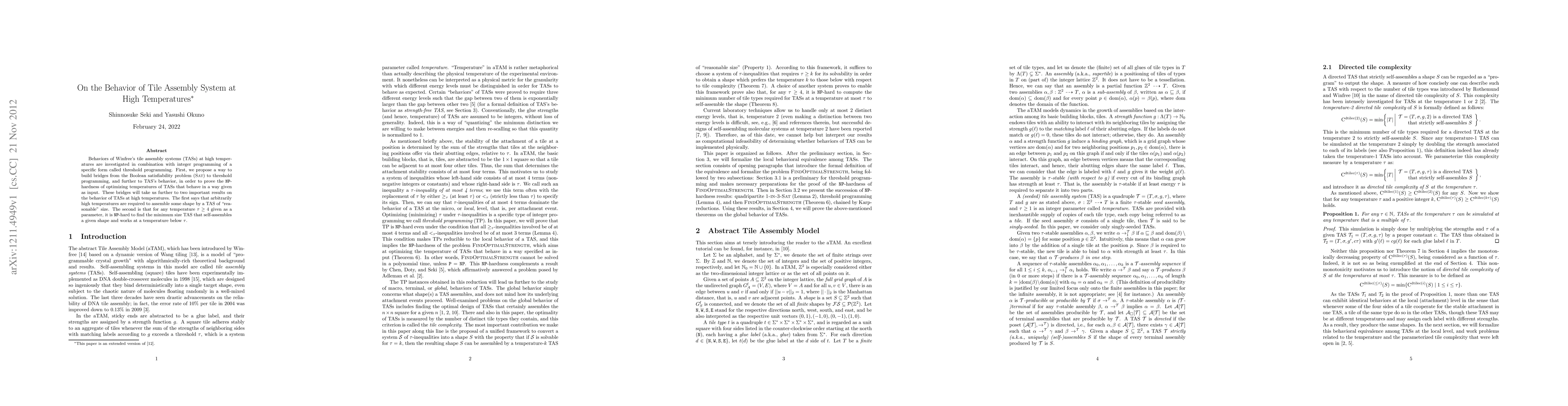 Behaviors of Winfree's tile assembly systems (TASs) at high temperatures are investigated in combination with integer programming of a specific form called threshold programming. First, we propose a way to build bridges from the Boolean satisfiability problem (SAT) to threshold programming, and further to TAS's behavior, in order to prove the NP-hardness of optimizing temperatures of TASs that behave in a way given as input. These bridges will take us further to two important results on the behavior of TASs at high temperatures. The first says that arbitrarily high temperatures are required to assemble some shape by a TAS of "reasonable" size. The second is that for any temperature at least 4 given as a parameter, it is NP-hard to find the minimum size TAS that self-assembles a given shape and works at the given temperature or below.