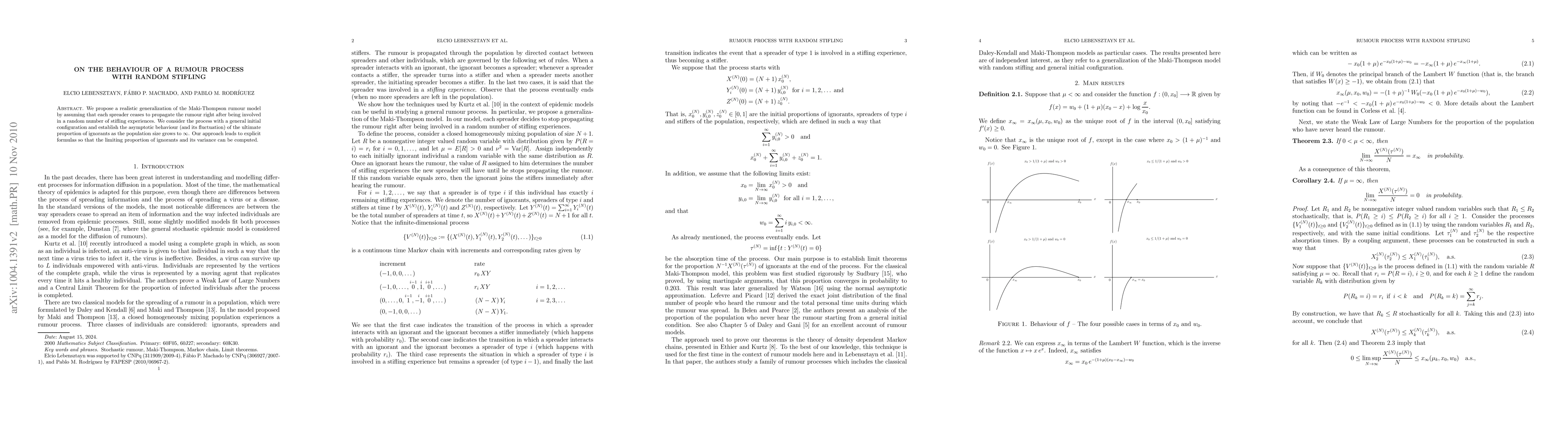 This research introduces a modified rumour propagation model incorporating random stifling experiences for spreaders. It presents explicit formulas to calculate the ultimate proportion of ignorants and its variance as population size approaches infinity, offering insights into rumour dynamics.