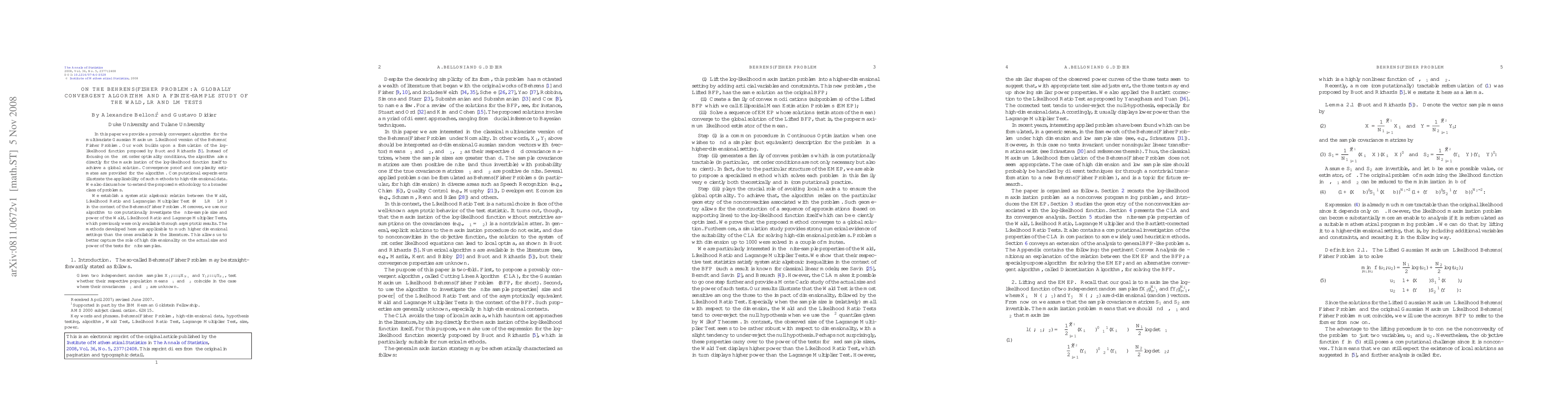 This paper presents a new algorithm for solving the Behrens-Fisher problem, which it proves converges globally and computationally investigates the finite-sample size and power of Wald, Likelihood Ratio, and Lagrange Multiplier Tests in high-dimensional settings.