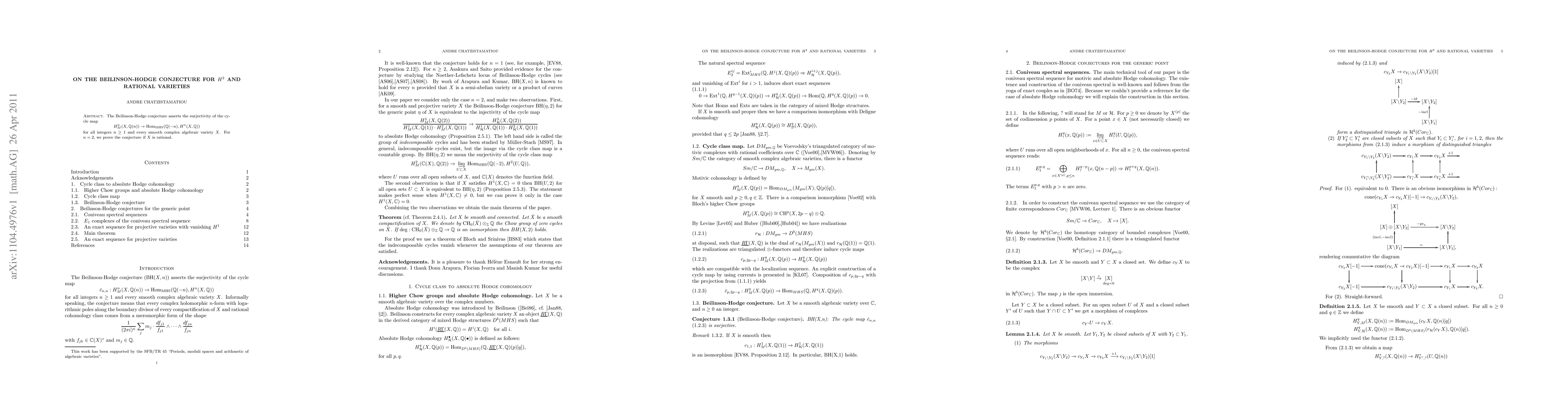 The Beilinson-Hodge conjecture asserts the surjectivity of the cycle map $$H^n_M(X,\Q(n)) \to {\rm Hom}_{MHS}(\Q(-n),H^n(X,\Q))$$ for all positive integers $n$ and every smooth complex algebraic variety $X$. For $n=2$, we prove the conjecture if $X$ is rational.