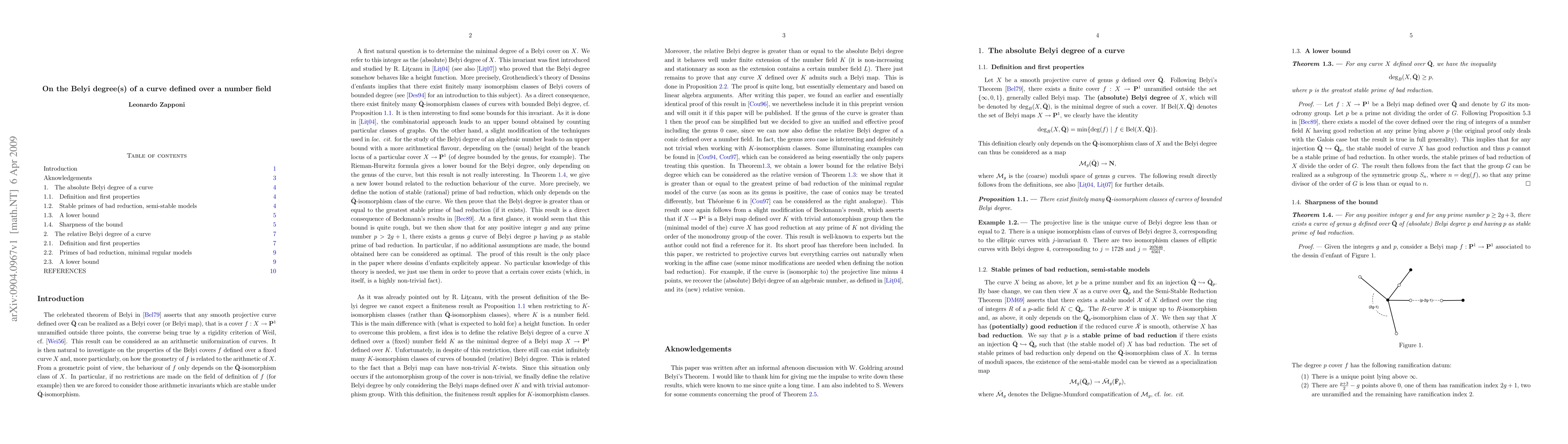 Researchers investigate the minimal degree of covers of a smooth projective curve over a number field, establishing lower bounds and sharp results for both absolute and relative Belyi degrees.
