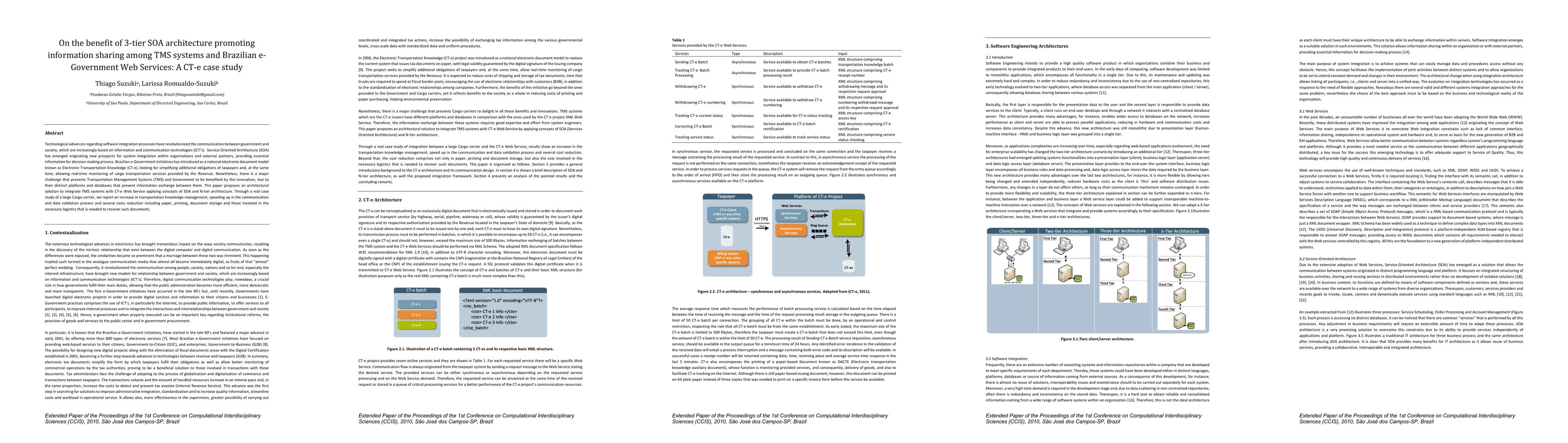 This paper proposes a 3-tier SOA architecture to integrate Transportation Management Systems with Brazilian e-Government Web Services, improving information sharing and reducing costs.