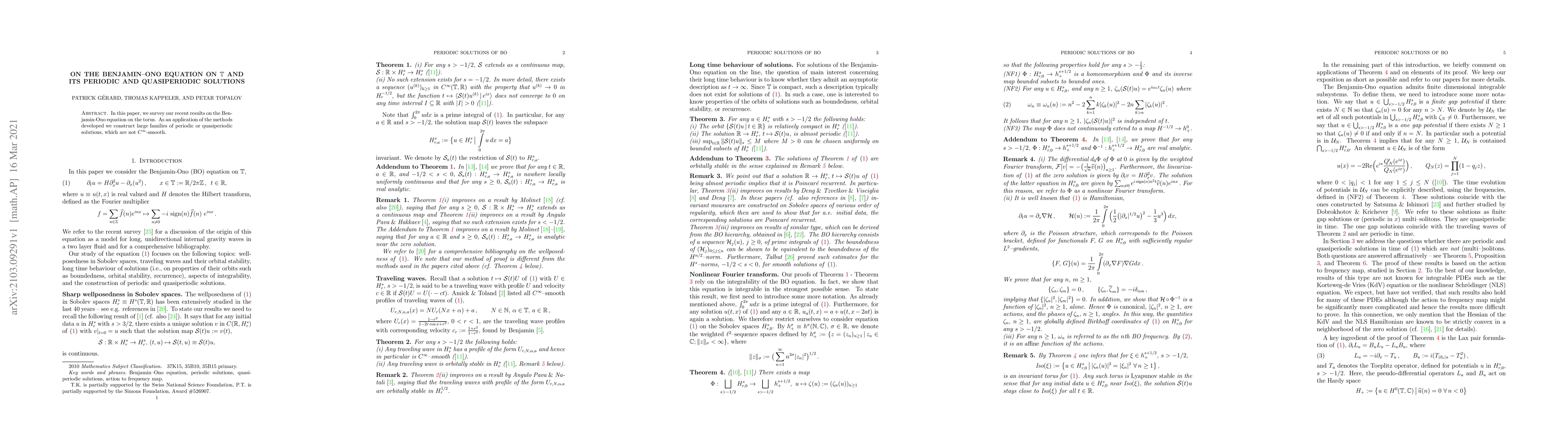 In this paper, we survey our recent results on the Benjamin-Ono equation on the torus. As an application of the methods developed we construct large families of periodic or quasiperiodic solutions, which are not $C^\infty$-smooth.