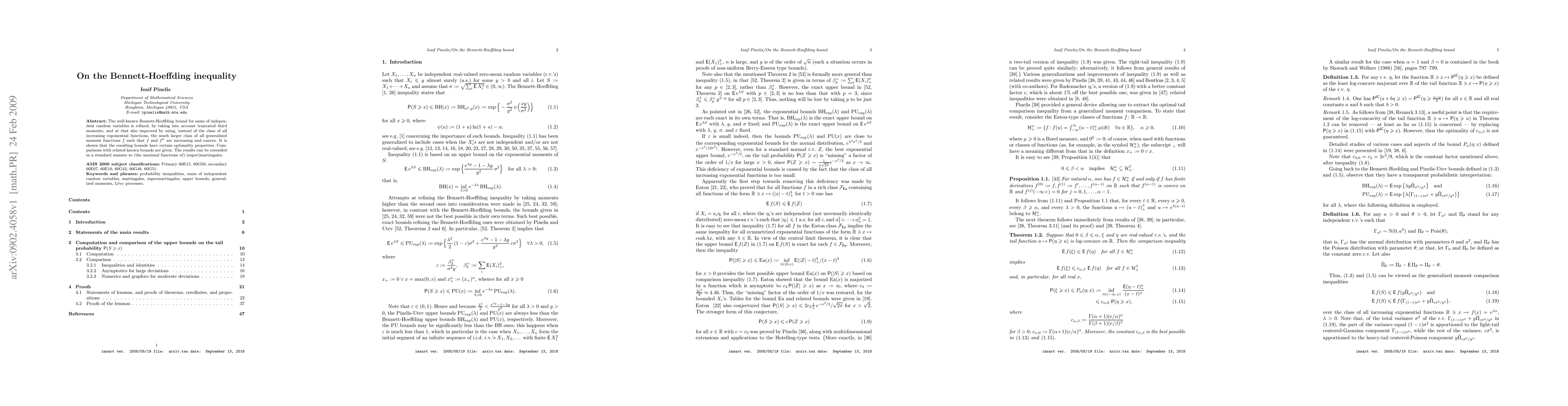 The well-known Bennett-Hoeffding bound for sums of independent random variables is refined, by taking into account truncated third moments, and at that also improved by using, instead of the class of all increasing exponential functions, the much larger class of all generalized moment functions f such that f and f" are increasing and convex. It is shown that the resulting bounds have certain optimality properties. Comparisons with related known bounds are given. The results can be extended in a standard manner to (the maximal functions of) (super)martingales.