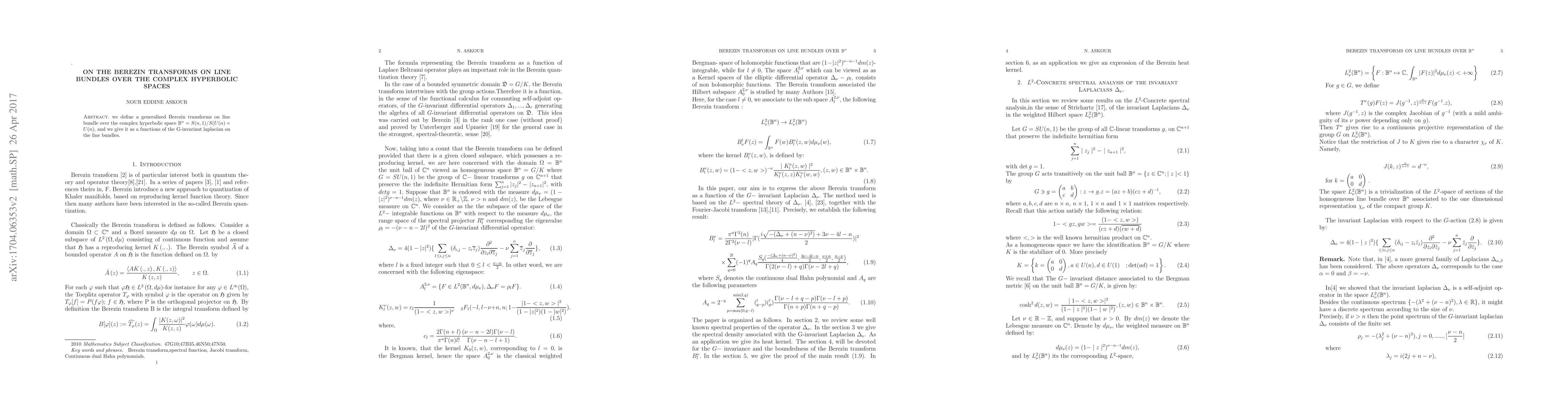 We define a generalized Berezin transforms on line bundle over the complex hyperbolic space and we give it as a functions of the G-invariant laplacian on the line bundles.