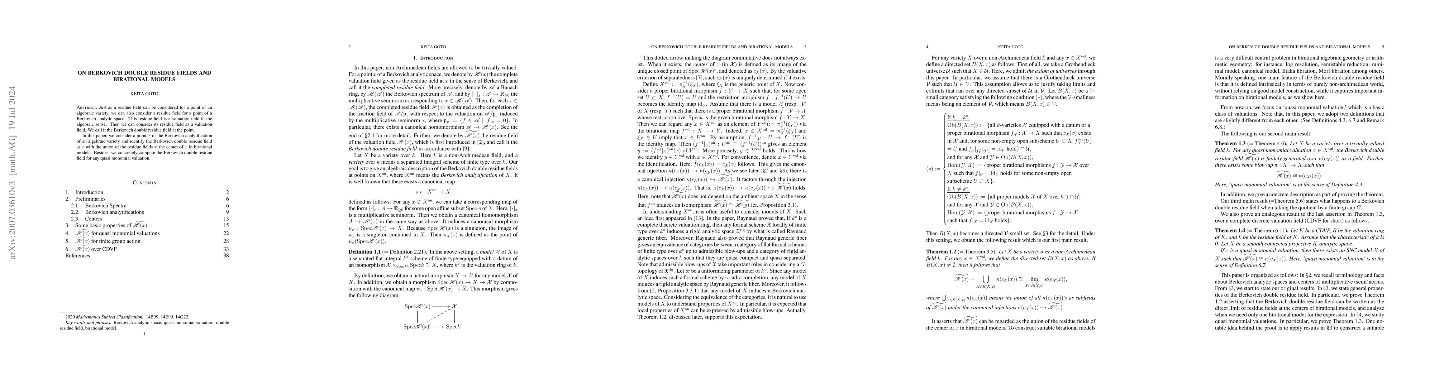 This paper explores Berkovich double residue fields, identifying them as unions of residue fields from centers in birational models of varieties. It specifically computes these fields for monomial valuations.