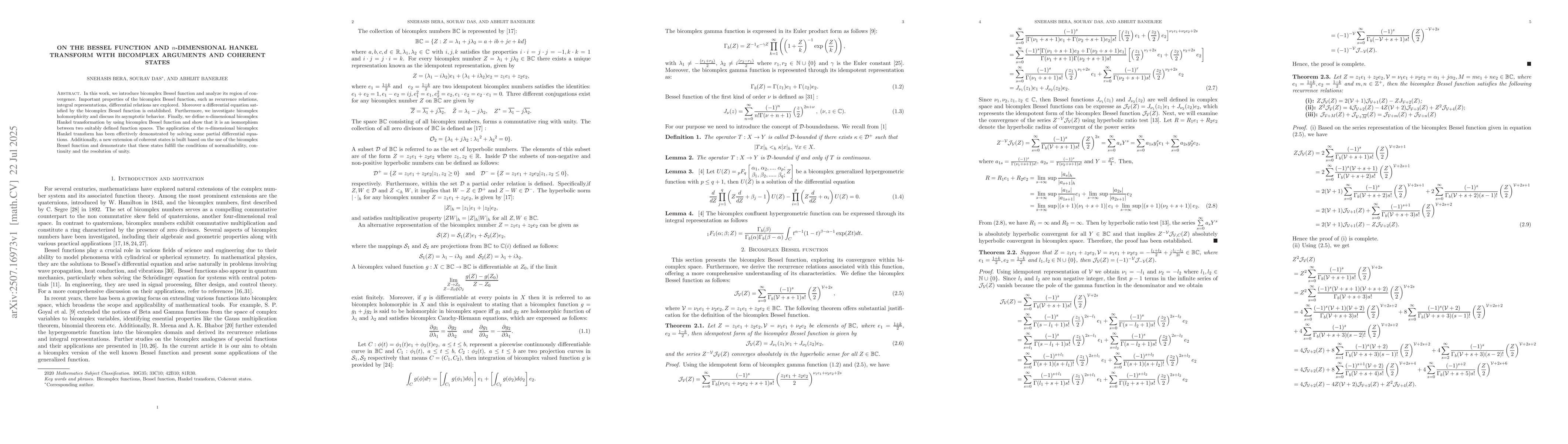 In this work, we introduce bicomplex Bessel function and analyze its region of convergence. Important properties of the bicomplex Bessel function, such as recurrence relations, integral representations, differential relations are explored. Moreover a differential equation satisfied by the bicomplex Bessel function is established. Furthermore, we investigate bicomplex holomorphicity and discuss its asymptotic behavior. Finally, we define $n$-dimensional bicomplex Hankel transformation by using bicomplex Bessel function and show that it is an isomorphism between two suitably defined function spaces. The application of the $n$-dimensional bicomplex Hankel transform has been effectively demonstrated by solving some partial differential equations. Additionally, a new extension of coherent states is built based on the use of the bicomplex Bessel function and demonstrate that these states fulfill the conditions of normalizability, continuity and the resolution of unity.