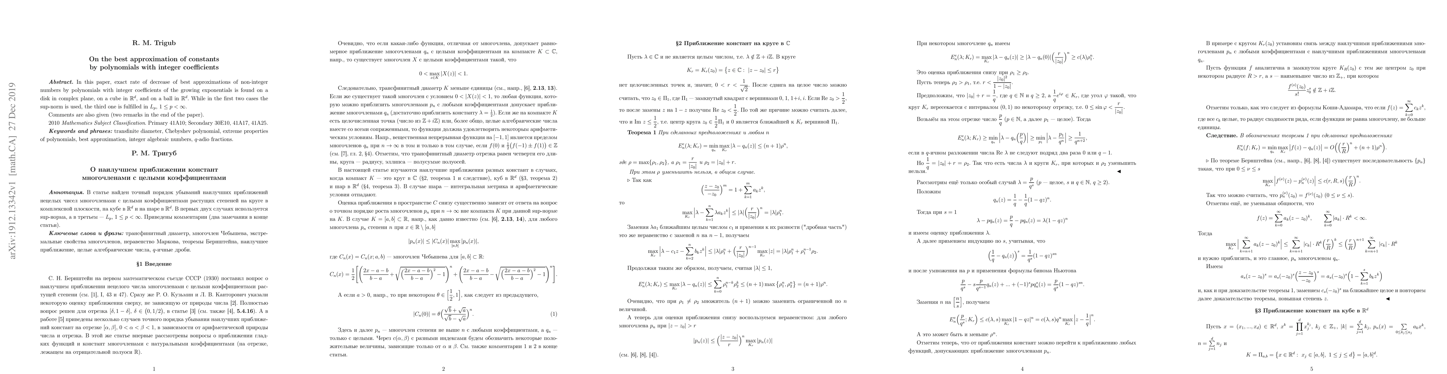 In this paper, exact rate of decrease of best approximations of non-integer numbers by polynomials with integer coefficients of the growing exponentials is found on a disk in complex plane, on a cube in $\mathbb{R}^d$, and on a ball in $\mathbb{R}^d$. While in the first two cases the $\sup$-norm is used, the third one is fulfilled in $L_p$, $1\leq p<\infty$. Comments are also given (two remarks in the end of the paper).