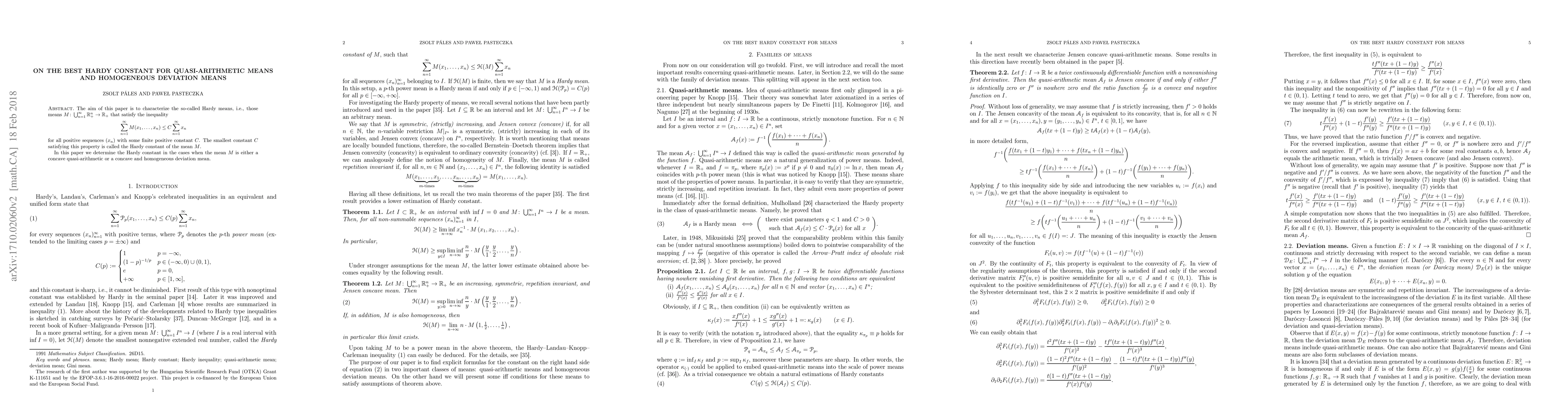 This paper characterizes Hardy means, determining the smallest constant $C$ for which $\sum_{n=1}^\infty M(x_1,\dots,x_n) \le C\sum_{n=1}^\infty x_n$ holds for all positive sequences. It finds the optimal Hardy constant for both concave quasi-arithmetic means and concave homogeneous deviation means.