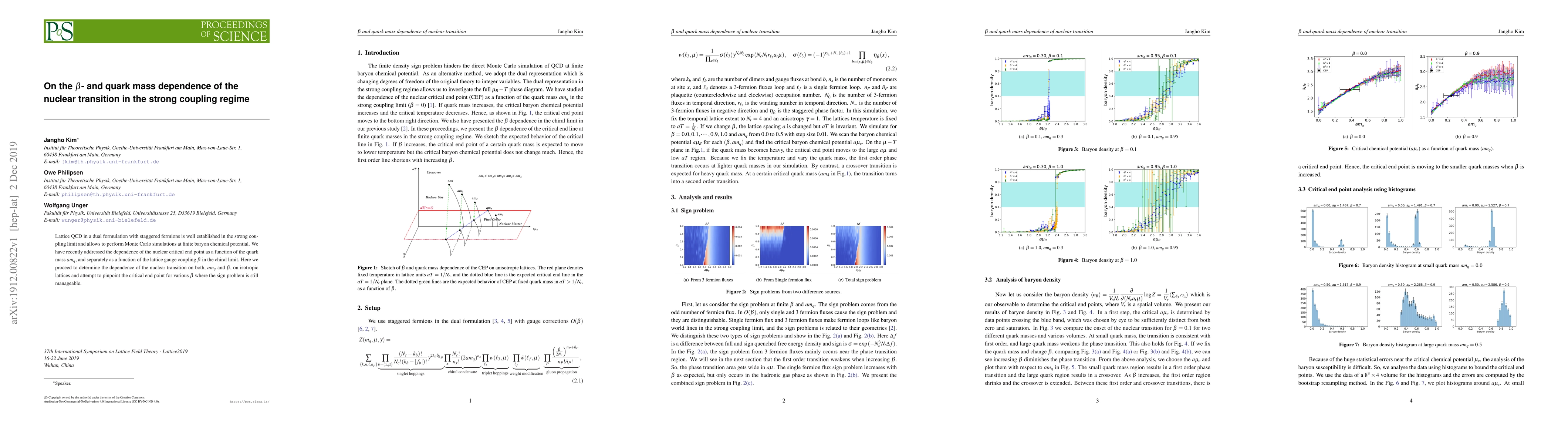 Researchers used lattice QCD to study the nuclear transition in strong coupling regime, focusing on how it depends on quark mass and lattice gauge coupling, and pinpointing critical end points for various couplings.