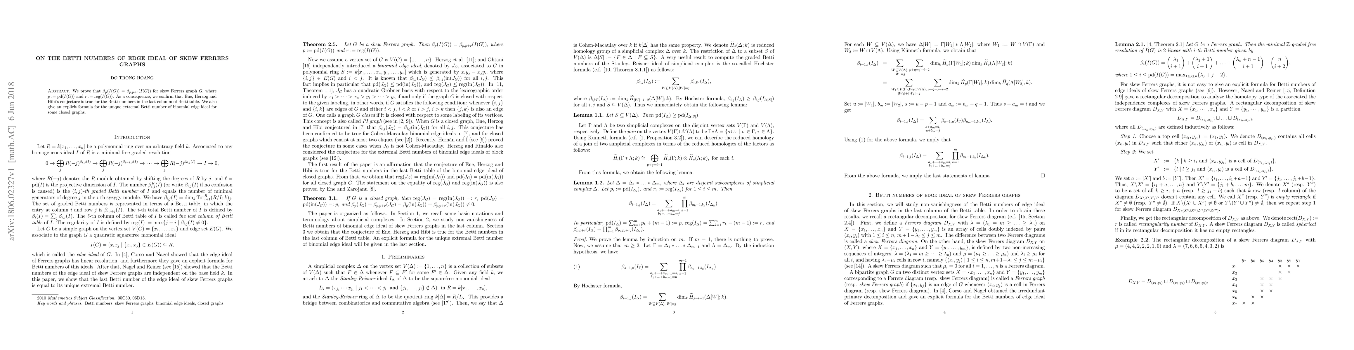 This paper proves that the Betti numbers of the edge ideal of skew Ferrers graphs satisfy $\beta_p(I(G)) = \beta_{p,p+r}(I(G))$, confirming Ene, Herzog, and Hibi's conjecture for the last column of the Betti table. It also provides an explicit formula for the unique extremal Betti number of binomial edge ideals for specific closed graphs.