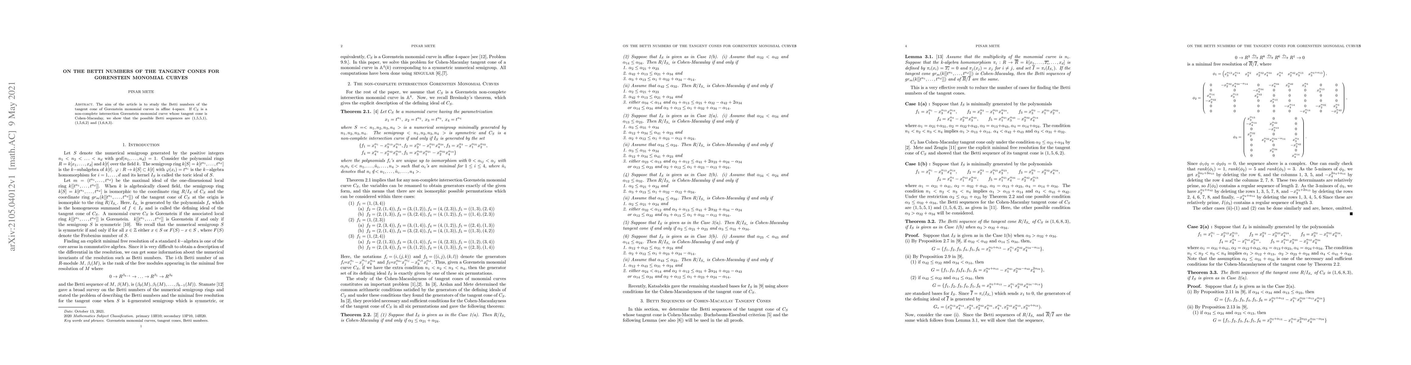 The paper investigates the Betti numbers of tangent cones for Gorenstein monomial curves in affine 4-space, revealing that non-complete intersection Gorenstein monomial curves with Cohen-Macaulay tangent cones have Betti sequences (1,5,5,1), (1,5,6,2), or (1,6,8,3).