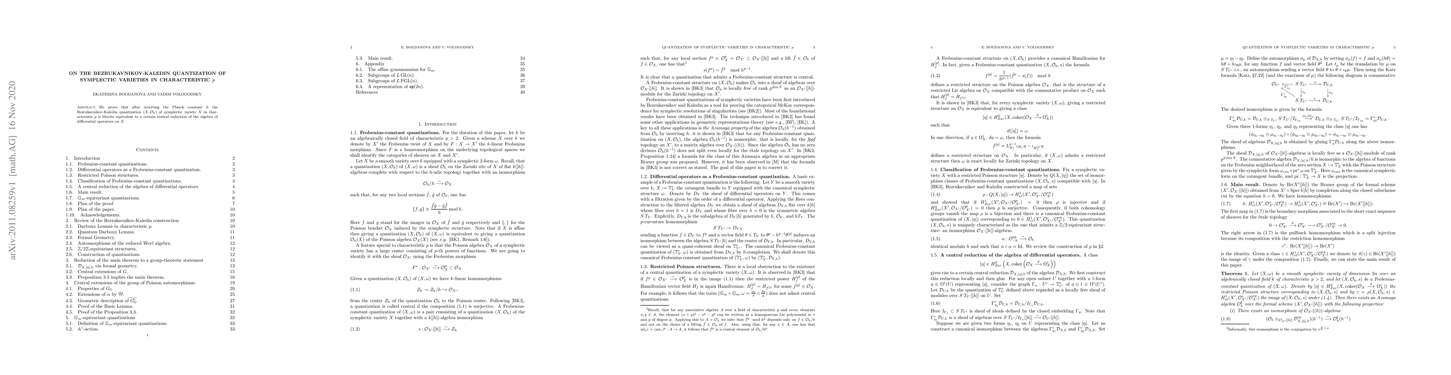 The research paper proves that a certain algebraic structure of symplectic varieties can be transformed into another form through a process called Bezrukavnikov-Kaledin quantization, which is related to the reduction of differential operators on the variety.