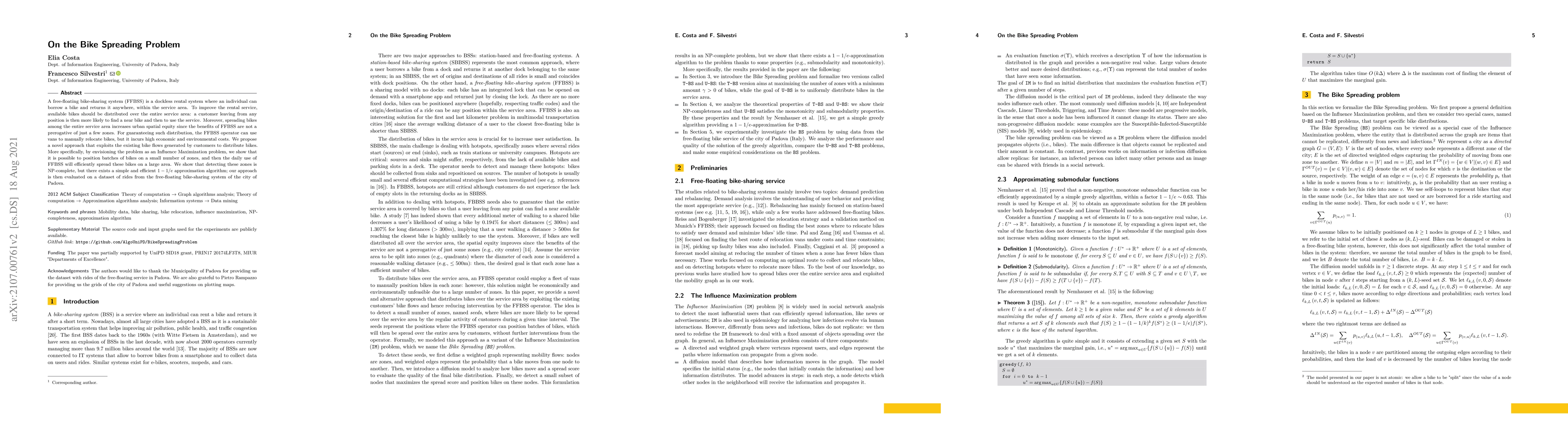 This paper proposes a novel method to distribute bikes evenly in free-floating bike-sharing systems using existing customer bike flows, rather than manual relocation. It presents this as an Influence Maximization problem, proving zone detection is NP-complete but offering a 1-1/e approximation algorithm. The approach is validated with Padova's bike-sharing data.