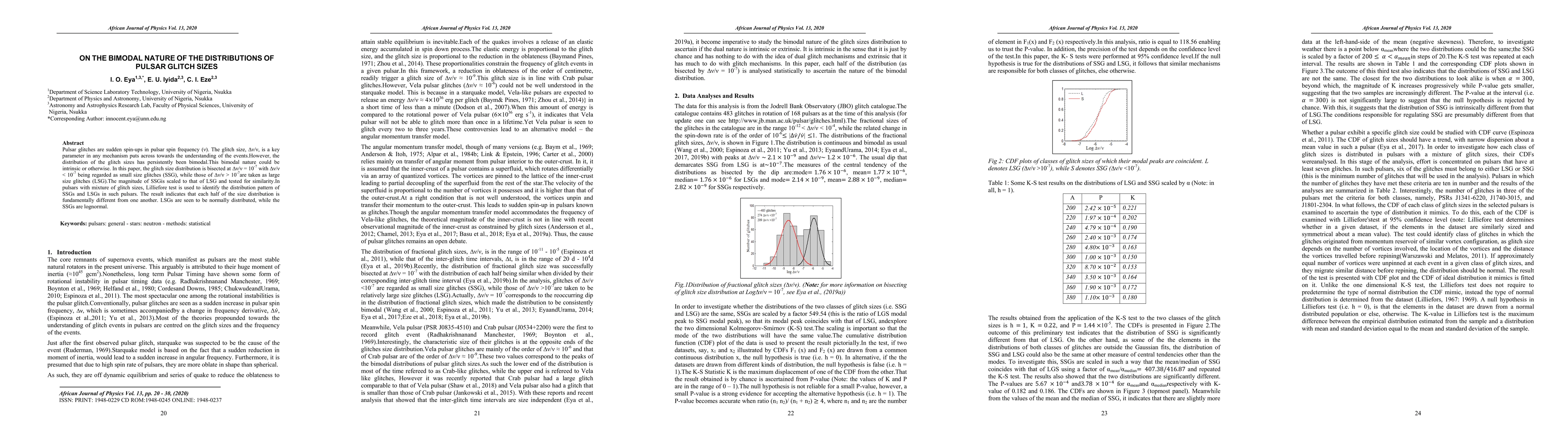 This paper investigates the bimodal nature of pulsar glitch size distributions, finding that they split into small size glitches (SSG) and large size glitches (LSG) at $\Delta\nu/\nu = 10^{-7}$. The study reveals that LSGs follow a normal distribution, while SSGs exhibit a lognormal distribution, suggesting fundamentally different underlying mechanisms for each type.