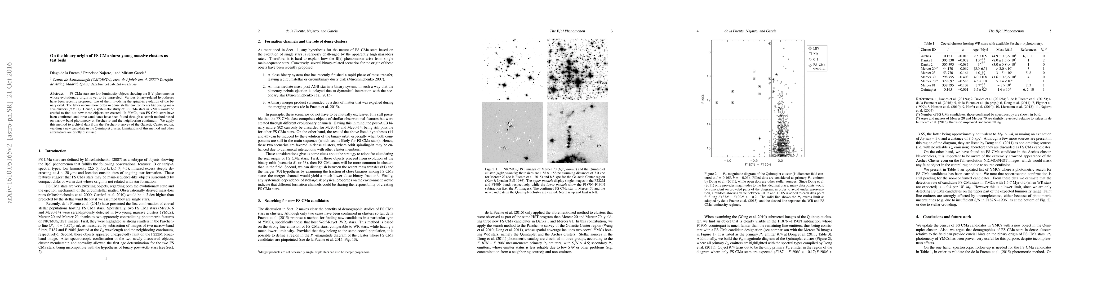 This study investigates the binary origin of FS CMa stars, focusing on young massive clusters as test beds. The research identifies two FS CMa stars and three candidates in clusters using narrow-band photometry, suggesting a potential link to binary evolution in dense stellar environments.