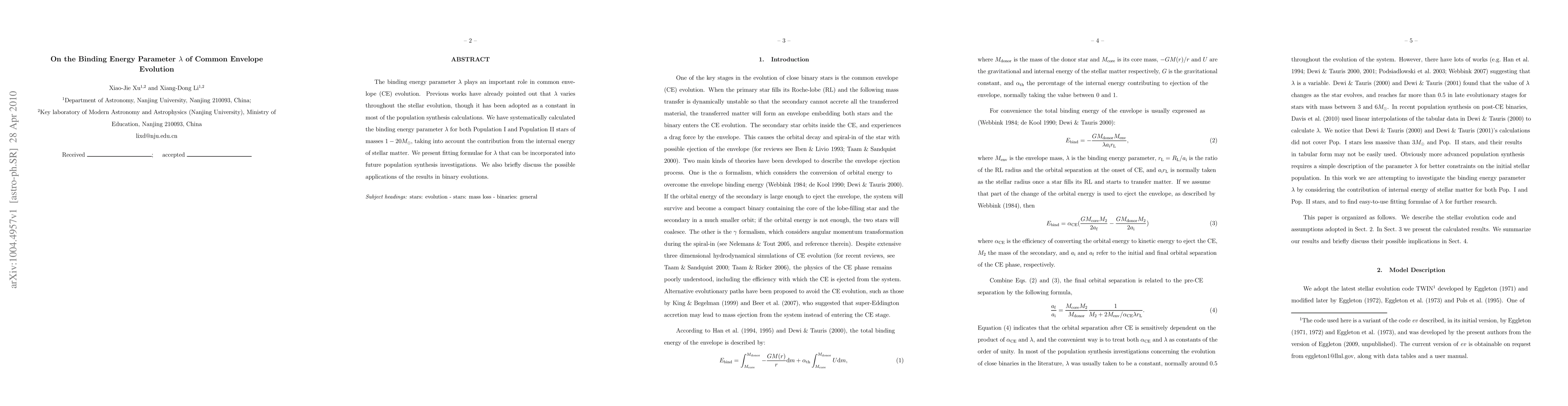 This paper systematically calculates the binding energy parameter $\lambda$ for Population I and II stars, emphasizing its variability during stellar evolution. It provides fitting formulae for $\lambda$ that can enhance future population synthesis studies and discusses potential applications in binary evolution.