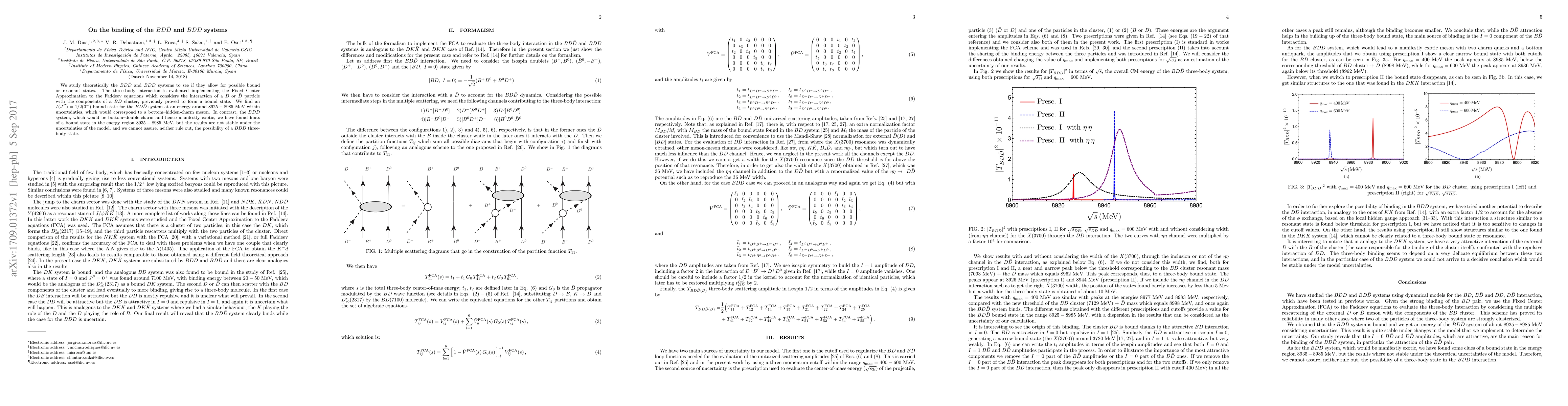 This work extends previous studies on the BD and B¯D systems by incorporating a third particle, allowing for the investigation of exotic, multi-quark states, which are of particular interest in understanding the rich spectrum of mesons in particle physics.
