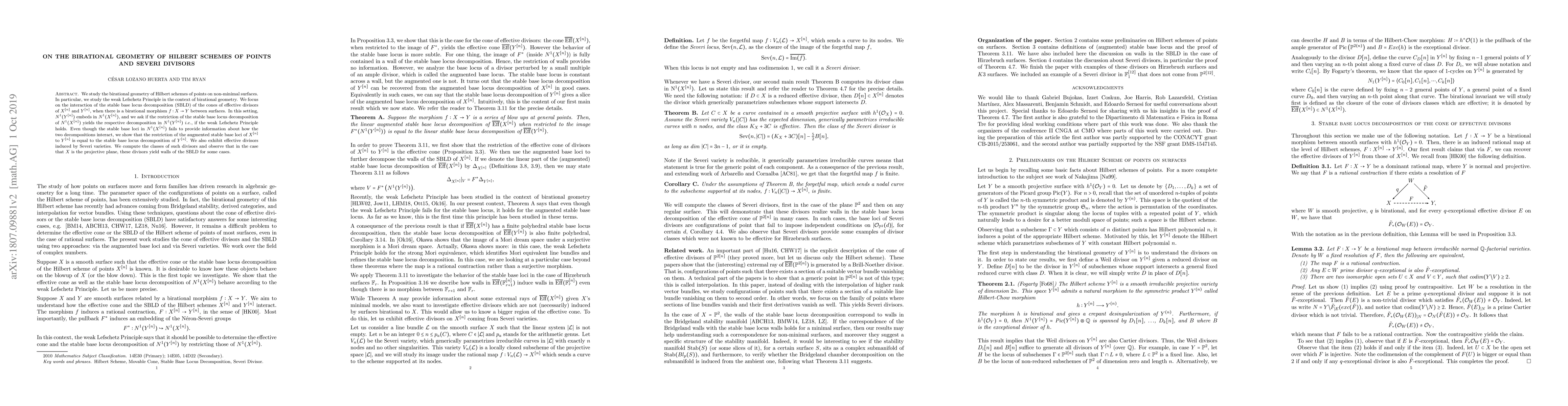 We study the birational geometry of Hilbert schemes of points on non-minimal surfaces. In particular, we study the weak Lefschetz Principle in the context of birational geometry. We focus on the interaction of the stable base locus decomposition (SBLD) of the cones of effective divisors of $X^{[n]}$ and $Y^{[n]}$, when there is a birational morphism $f:X\rightarrow Y$ between surfaces. In this setting, $N^1(Y^{[n]})$ embeds in $N^1(X^{[n]})$, and we ask if the restriction of the stable base locus decomposition of $N^1(X^{[n]})$ yields the respective decomposition in $N^1(Y^{[n]})$ $i.e.$, if the weak Lefschetz Principle holds. Even though the stable base loci in $N^1(X^{[n]})$ fails to provide information about how the two decompositions interact, we show that the restriction of the augmented stable base loci of $X^{[n]}$ to $Y^{[n]}$ is equal to the stable base locus decomposition of $Y^{[n]}$. We also exhibit effective divisors induced by Severi varieties. We compute the classes of such divisors and observe that in the case that $X$ is the projective plane, these divisors yield walls of the SBLD for some cases.