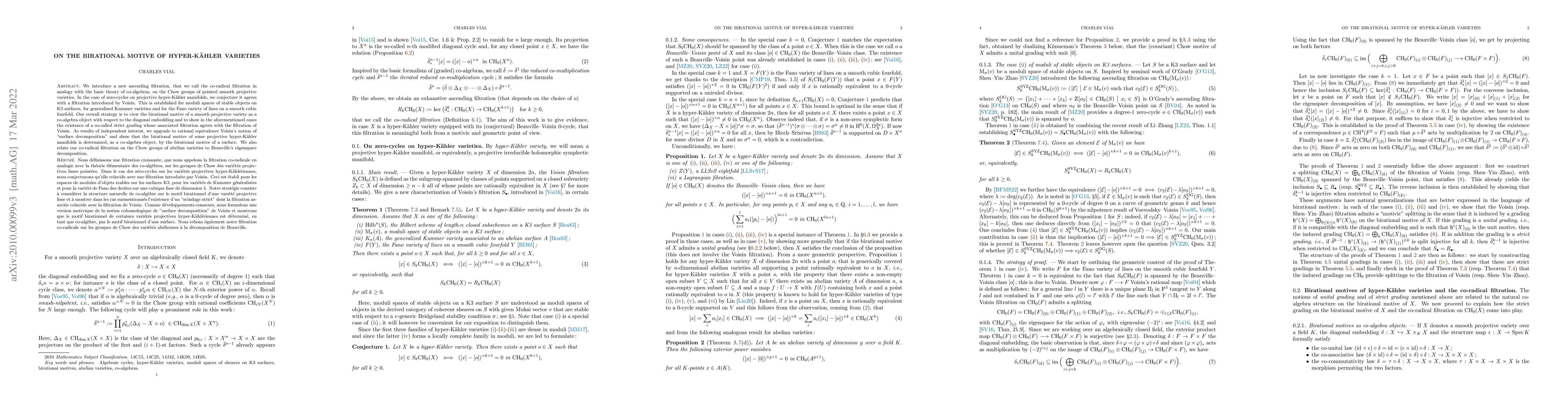 This paper introduces a co-radical filtration on Chow groups of smooth projective varieties, hypothesizing it aligns with Voisin's filtration for zero-cycles on hyper-Kähler manifolds. The authors prove this for specific cases like moduli spaces of K3 surfaces and Kummer varieties, showing the birational motive is a co-algebra object.