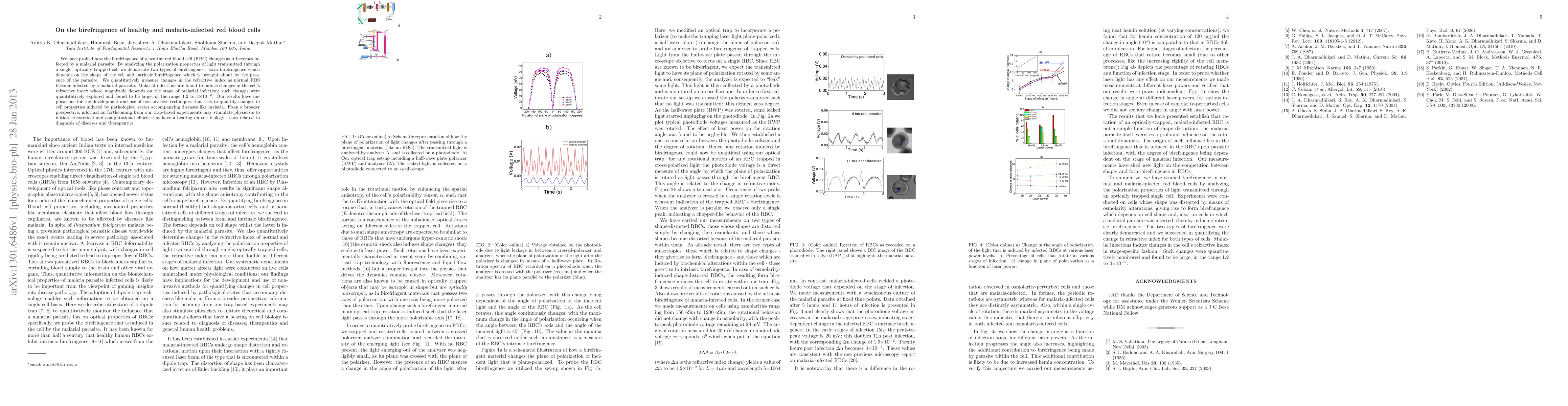 This study investigates the birefringence changes in red blood cells (RBCs) as they become malarial-infected, identifying two types: form birefringence and intrinsic birefringence due to the parasite. Quantitative analysis reveals significant refractive index changes in infected RBCs, with magnitudes varying by the stage of infection, potentially aiding non-invasive diagnostic techniques.