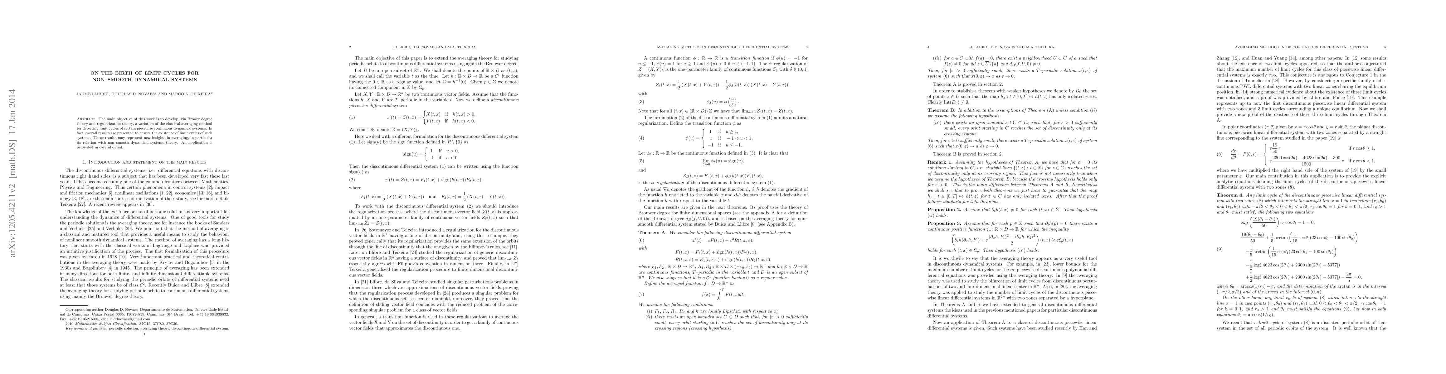 This paper develops a new method using Brower degree theory and regularization to detect limit cycles in non-smooth dynamical systems, presenting results that ensure their existence and offering new insights into averaging methods. An application is provided to illustrate the method's effectiveness.