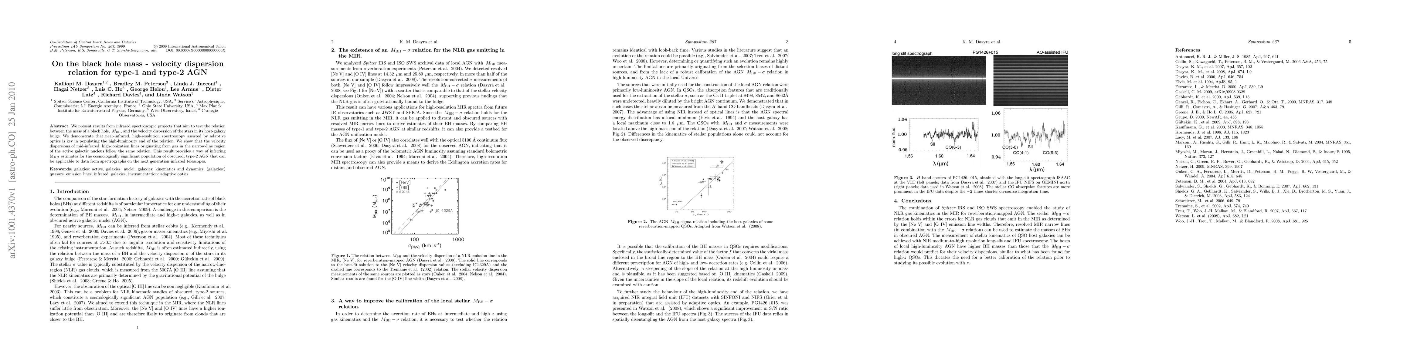 We present results from infrared spectroscopic projects that aim to test the relation between the mass of a black hole, M_BH, and the velocity dispersion of the stars in its host-galaxy bulge. We demonstrate that near-infrared, high-resolution spectroscopy assisted by adaptive optics is key in populating the high-luminosity end of the relation. We show that the velocity dispersions of mid-infrared, high-ionization lines originating from gas in the narrow-line region of the active galactic nucleus follow the same relation. This result provides a way of inferring M_BH estimates for the cosmologically significant population of obscured, type-2 AGN that can be applicable to data from spectrographs on the next generation infrared telescopes.