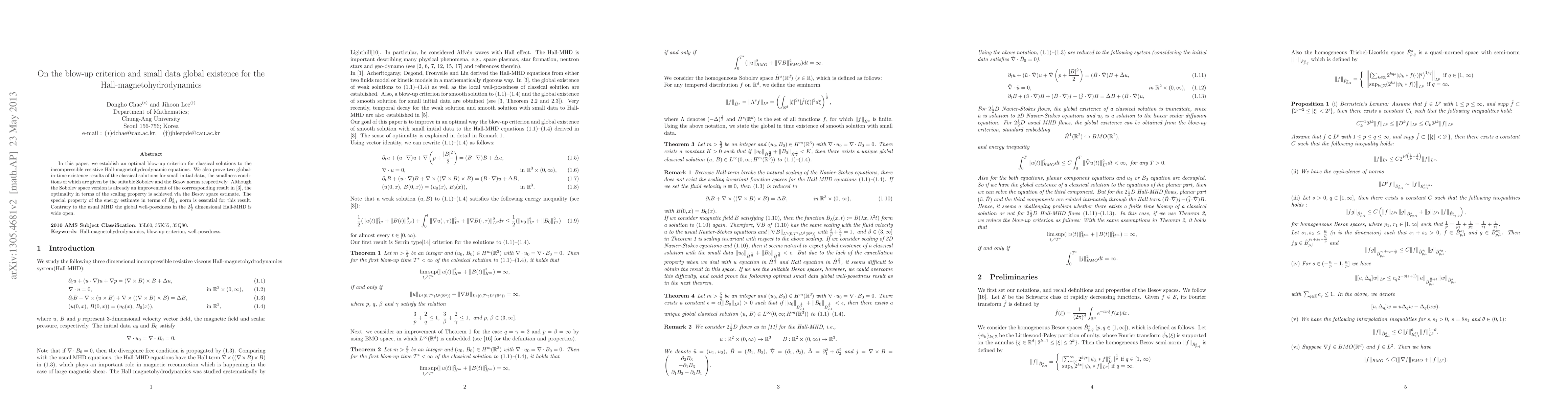 In this paper, we establish an optimal blow-up criterion for classical solutions to the incompressible resistive Hall-magnetohydrodynamic equations. We also prove two global-in-time existence results of the classical solutions for small initial data, the smallness conditions of which are given by the suitable Sobolev and the Besov norms respectively. Although the Sobolev space version is already an improvement of the corrresponding result in \cite{Chae-Degond-Liu}, the optimality in terms of the scaling property is achieved via the Besov space estimate. The special property of the energy estimate in terms of $\dot{B}^s_{2,1}$ norm is essential for this result. Contrary to the usual MHD the global well-posedness in the $2\frac12$ dimensional Hall-MHD is wide open.