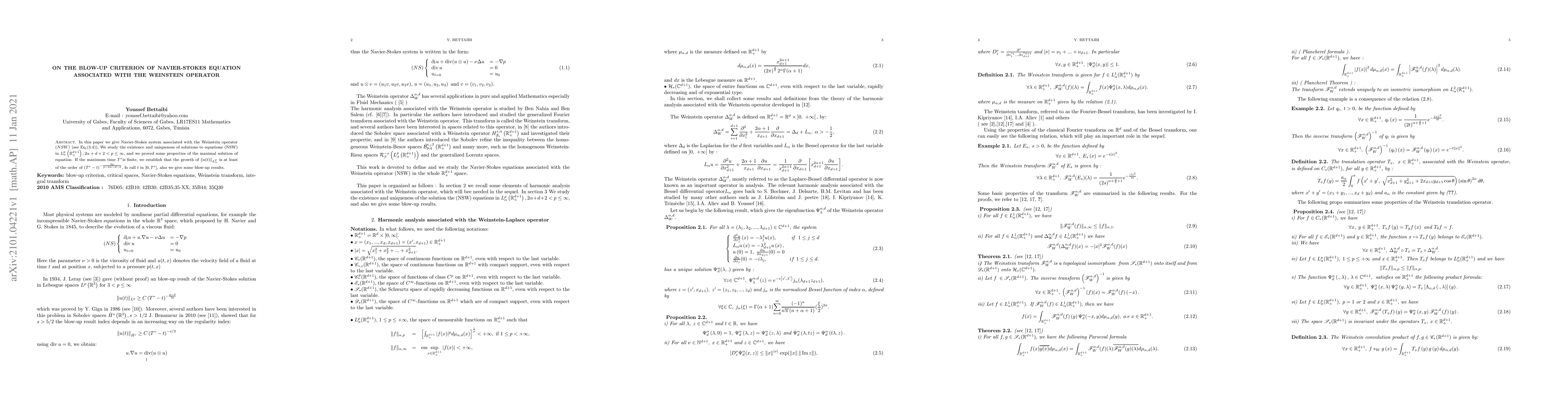 In this paper we give Navier-Stokes system associated with the Weinstein operator $(NSW)$ (see Eq.\eqref{11}), We study the existence and uniqueness of solutions to equations (NSW) in $L_{\alpha}^{p}\left(\mathbb{R}_{+}^{d+1}\right), 2 \alpha+d+2