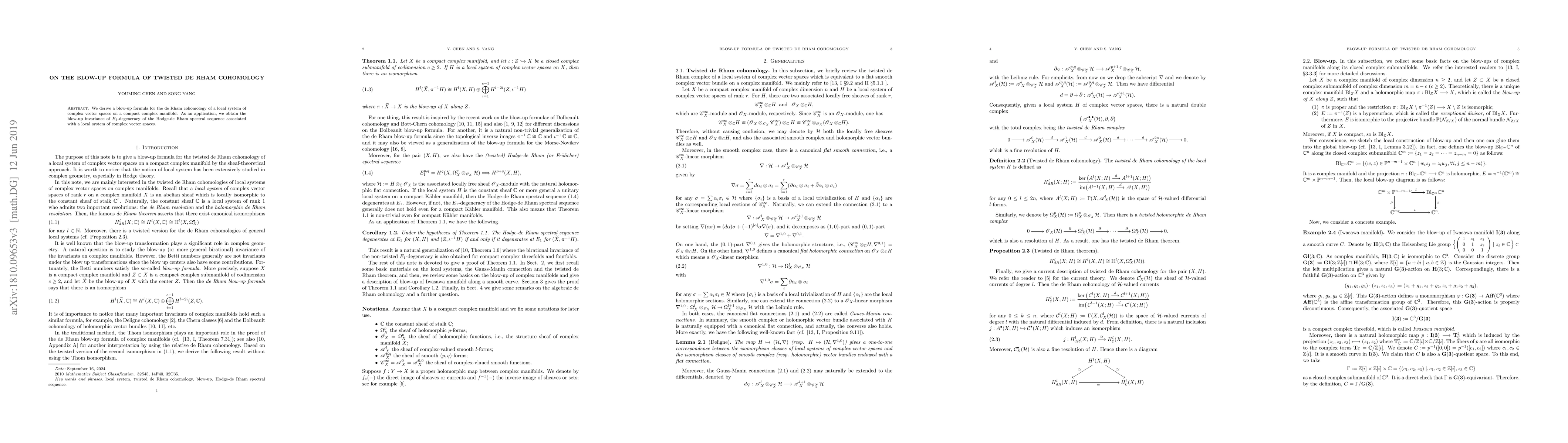 This paper derives a blow-up formula for the de Rham cohomology of local systems on compact complex manifolds and demonstrates the blow-up invariance of the $E_{1}$-degeneracy in the Hodge-de Rham spectral sequence.