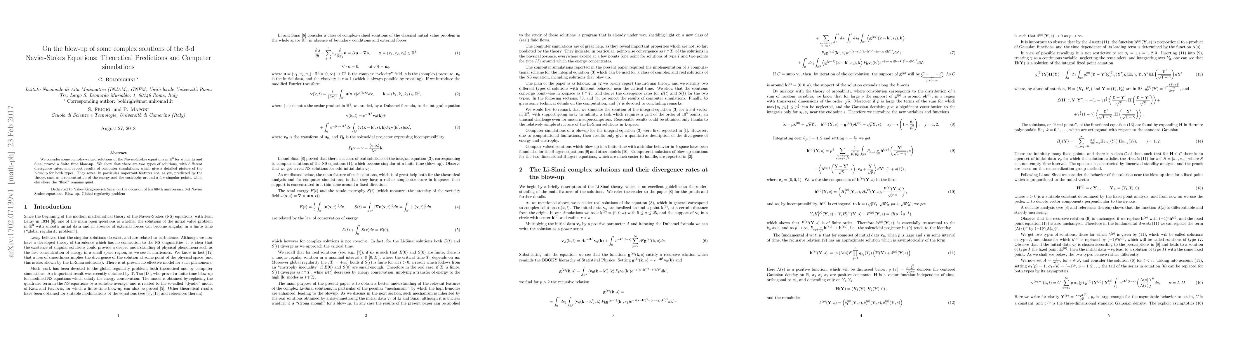 We consider some complex-valued solutions of the Navier-Stokes equations in $R^{3}$ for which Li and Sinai proved a finite time blow-up. We show that there are two types of solutions, with different divergence rates, and report results of computer simulations, which give a detailed picture of the blow-up for both types. They reveal in particular important features not, as yet, predicted by the theory, such as a concentration of the energy and the enstrophy around a few singular points, while elsewhere the "fluid" remains quiet.
