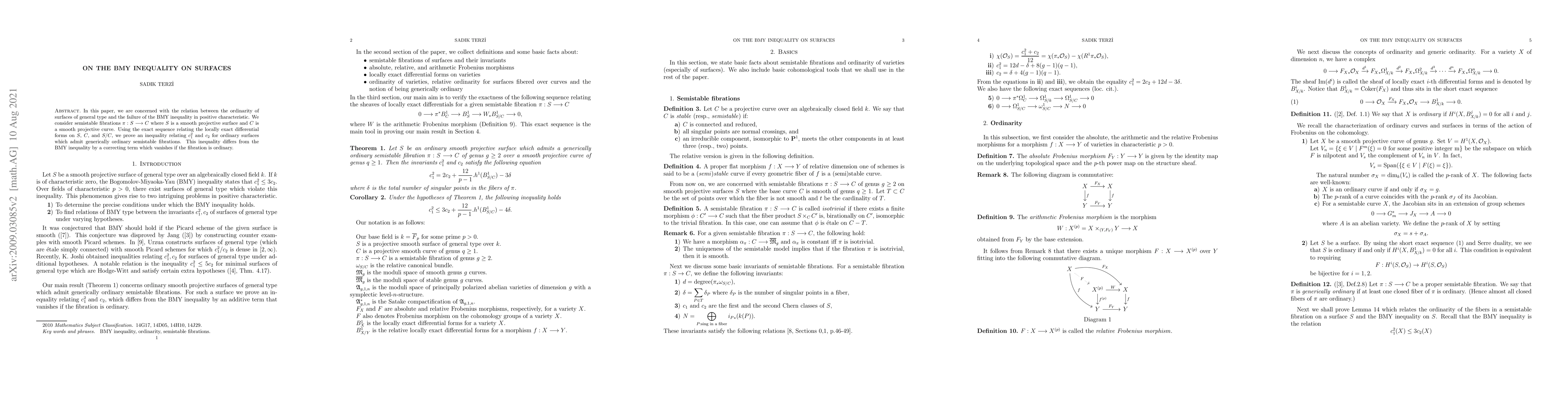 This paper explores the relationship between the ordinarity of surfaces of general type and the failure of the BMY inequality in positive characteristic. It proves a modified inequality for ordinary surfaces with generically ordinary semistable fibrations, differing from the BMY inequality by a vanishing correcting term.