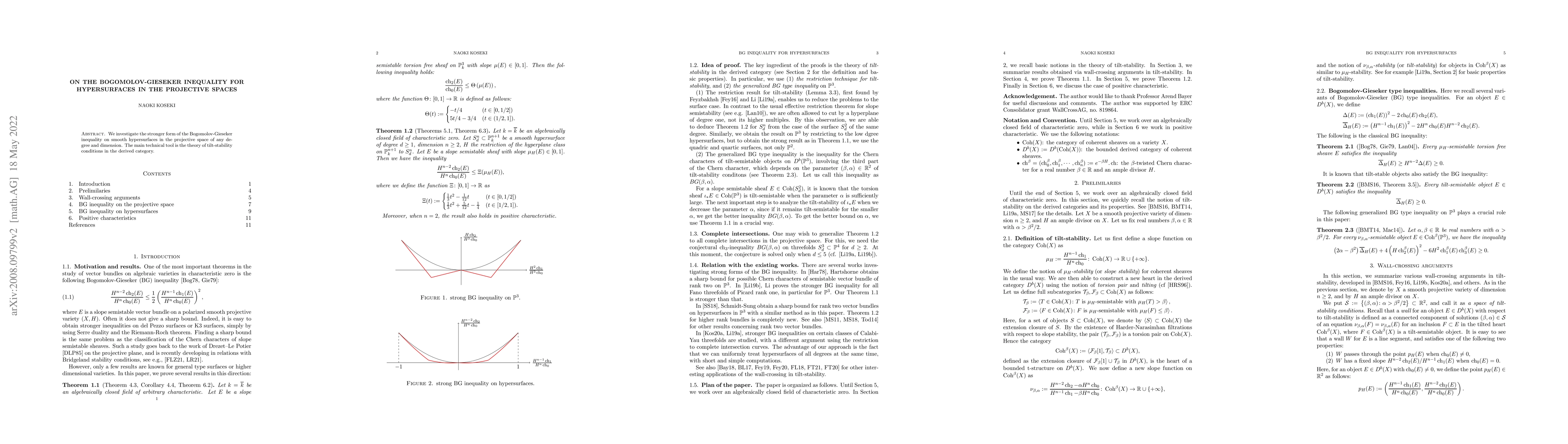 Summary: This paper explores a refined version of the Bogomolov-Gieseker inequality for smooth hypersurfaces in projective spaces, utilizing tilt-stability conditions from the derived category as its primary technical approach.