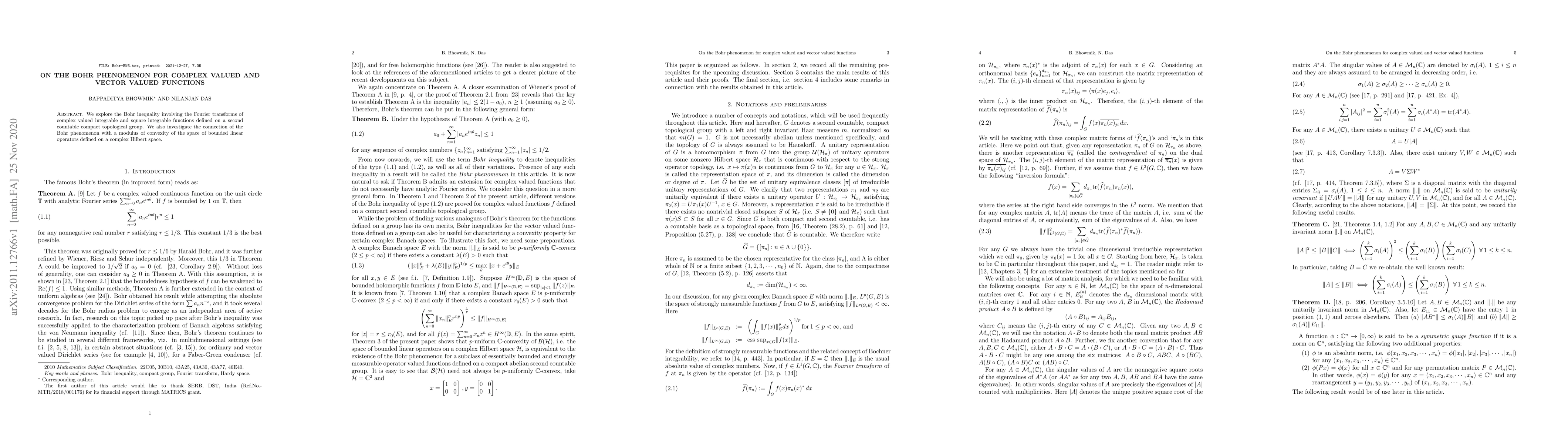 Summary: This paper examines the Bohr inequality for complex and vector-valued functions through their Fourier transforms on a compact topological group and explores its relation to the modulus of convexity in the space of bounded linear operators on a complex Hilbert space.