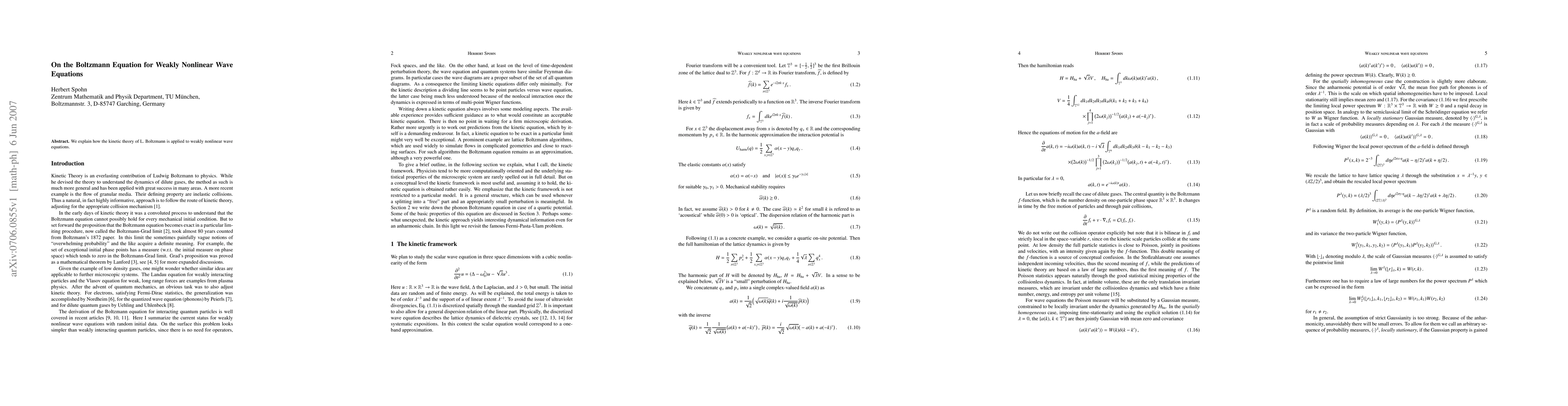 Summary: This paper applies L. Boltzmann's kinetic theory to analyze weakly nonlinear wave equations, providing insights into their behavior and dynamics. The study bridges kinetic theory with wave equation solutions in a weakly nonlinear regime.