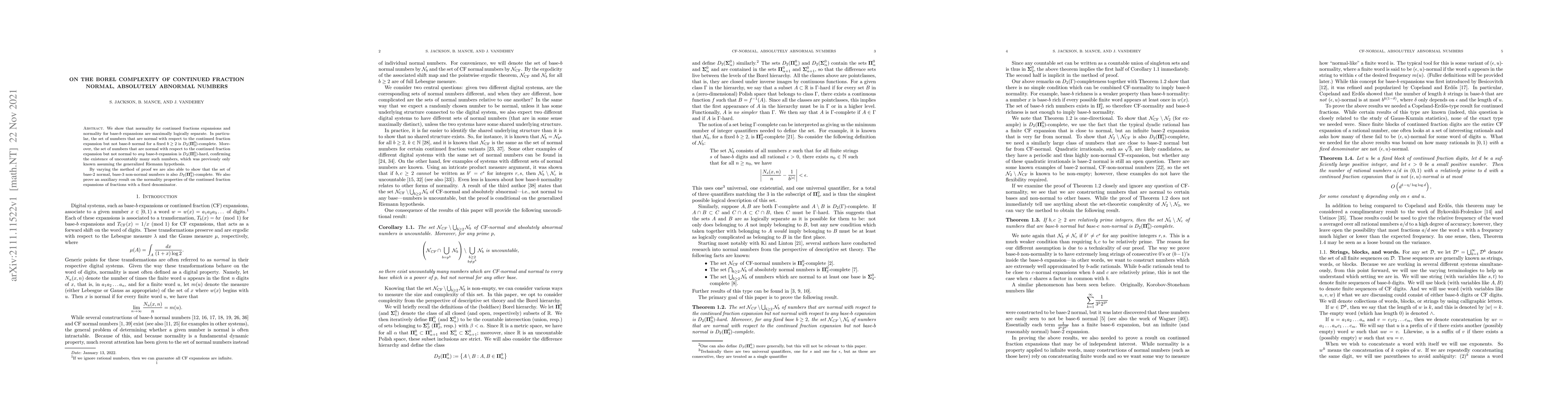 This paper demonstrates that continued fraction normality and base-$b$ normality are logically distinct, showing that numbers normal in continued fraction form but not in any base-$b$ form are $D_2(\boldsymbol{\Pi}_3^0)$-complete. It also proves that numbers normal in continued fraction form but not in base-$2$ or base-$3$ are $D_2(\boldsymbol{\Pi}_3^0)$-complete, confirming the existence of uncountably many such numbers.